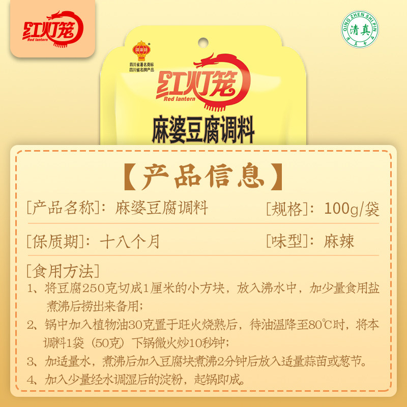 Red Lantern Authentic Mapo Tofu Seasoning 100g * 3 Bags of Braised Meat Sauce Package Home Combination Sichuan Fried Vegetables