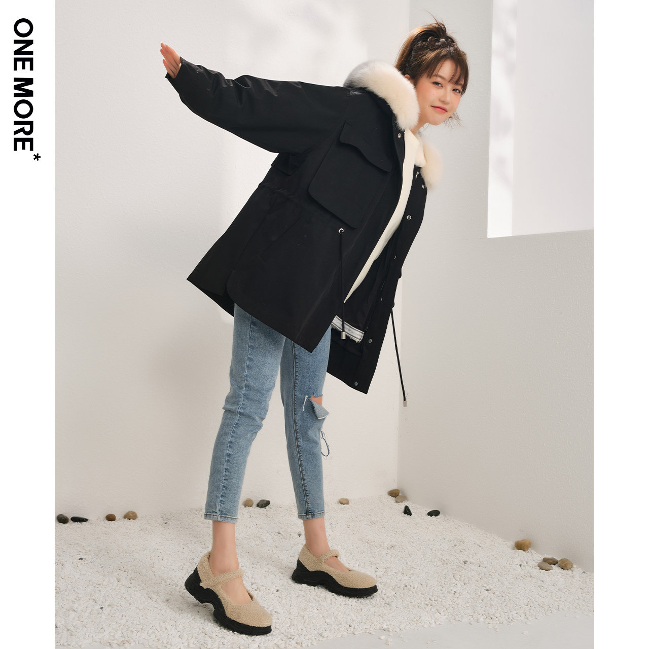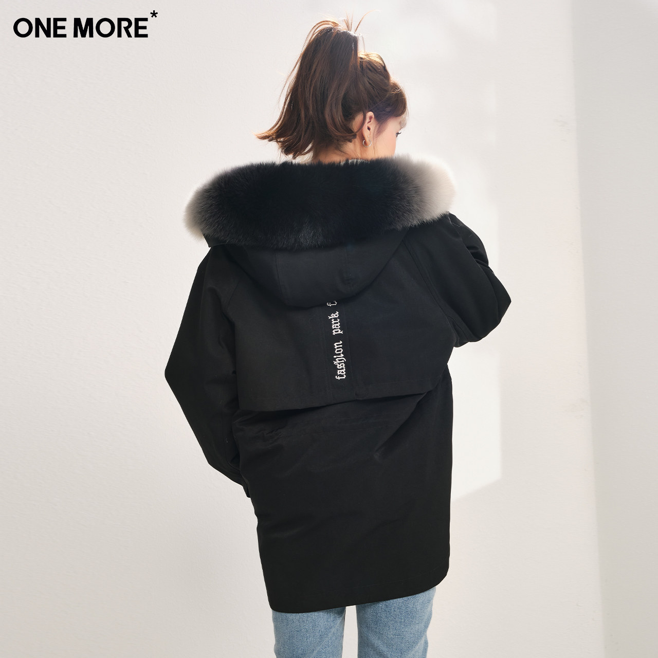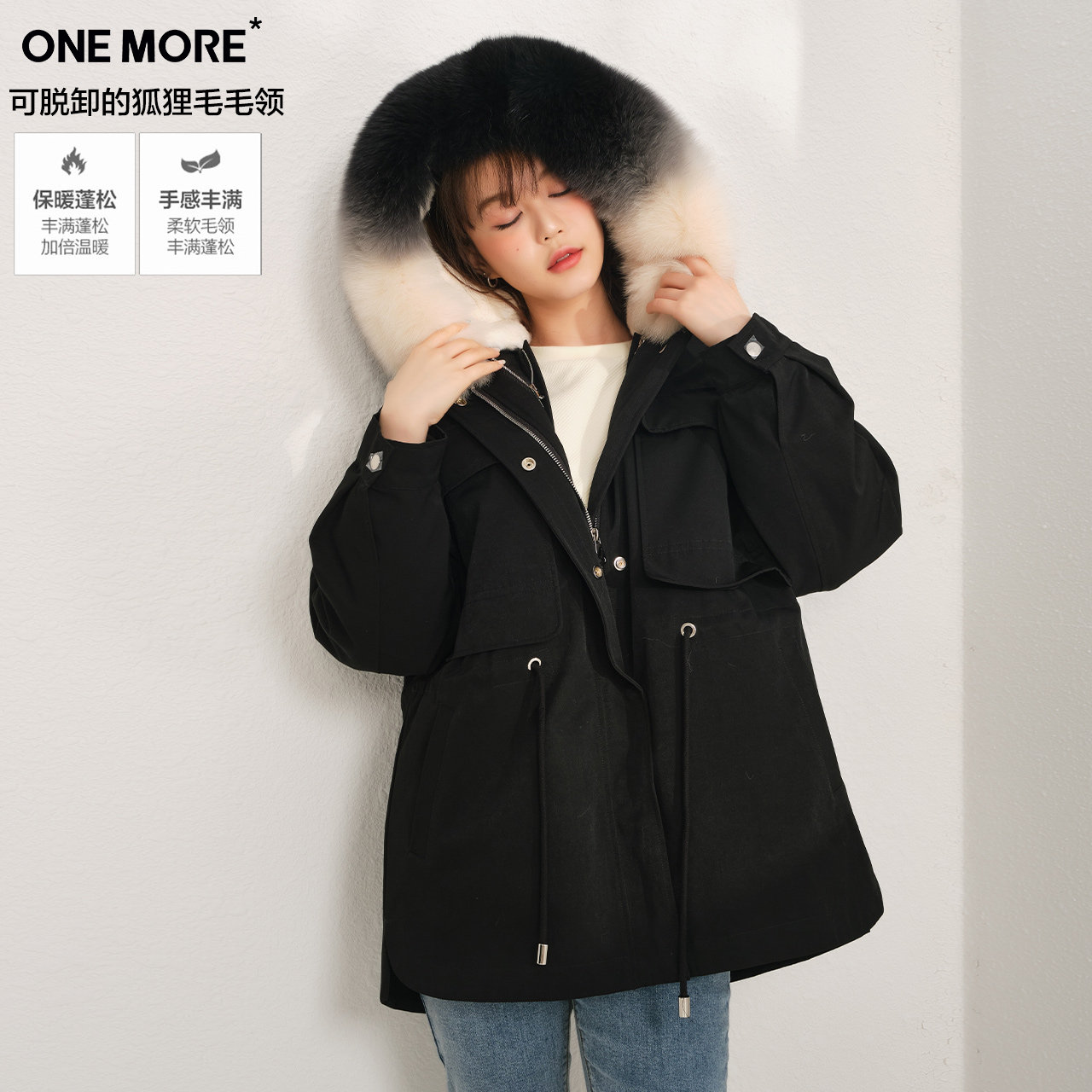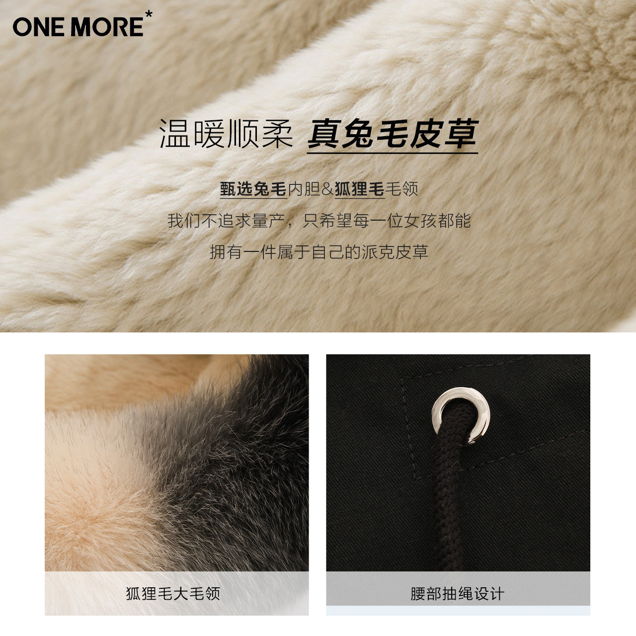 ONE MORE2021 winter new black fur rabbit maoist overcomes female drawstring fur coat short section