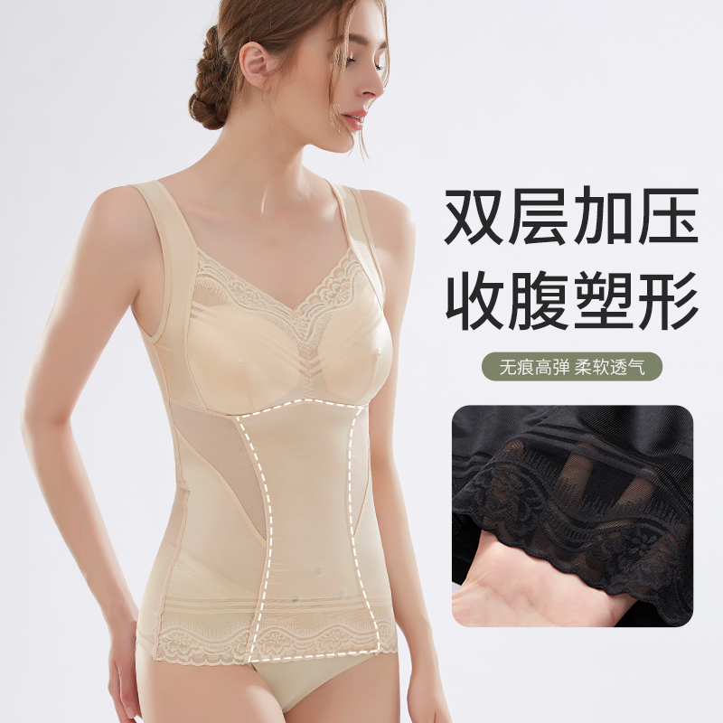With bra pad body sculpting belly vest women's top postpartum waist body sculpting small belly strong summer thin section