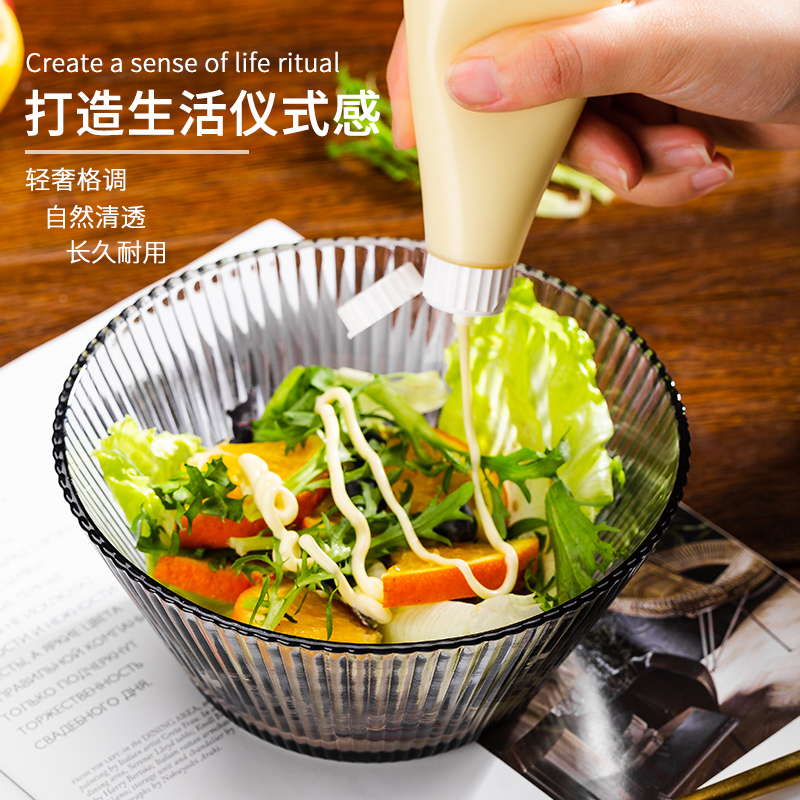 Glass salad bowl Home fruit bowl creative Nordic style dessert tableware Japanese net red haze blue salad plate
