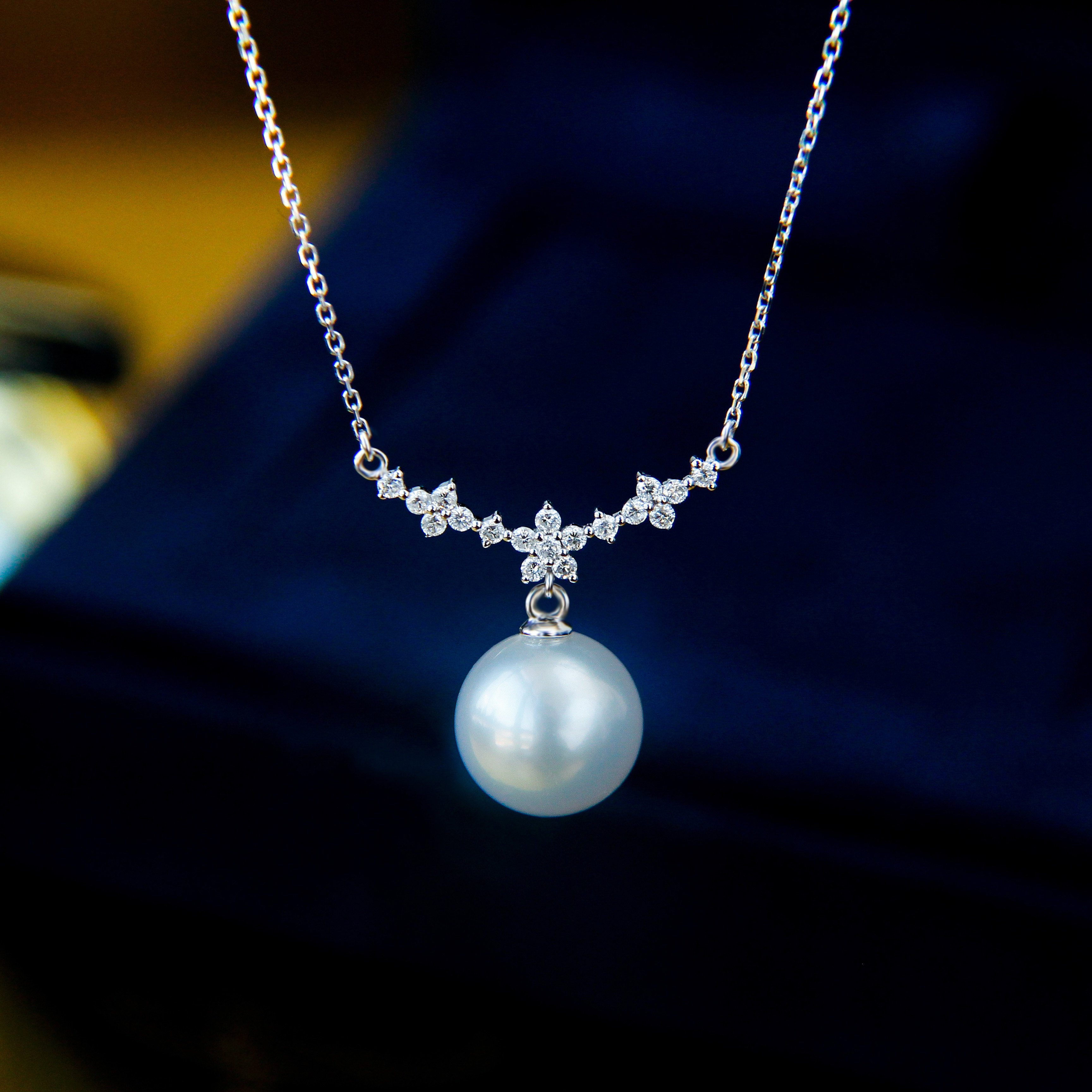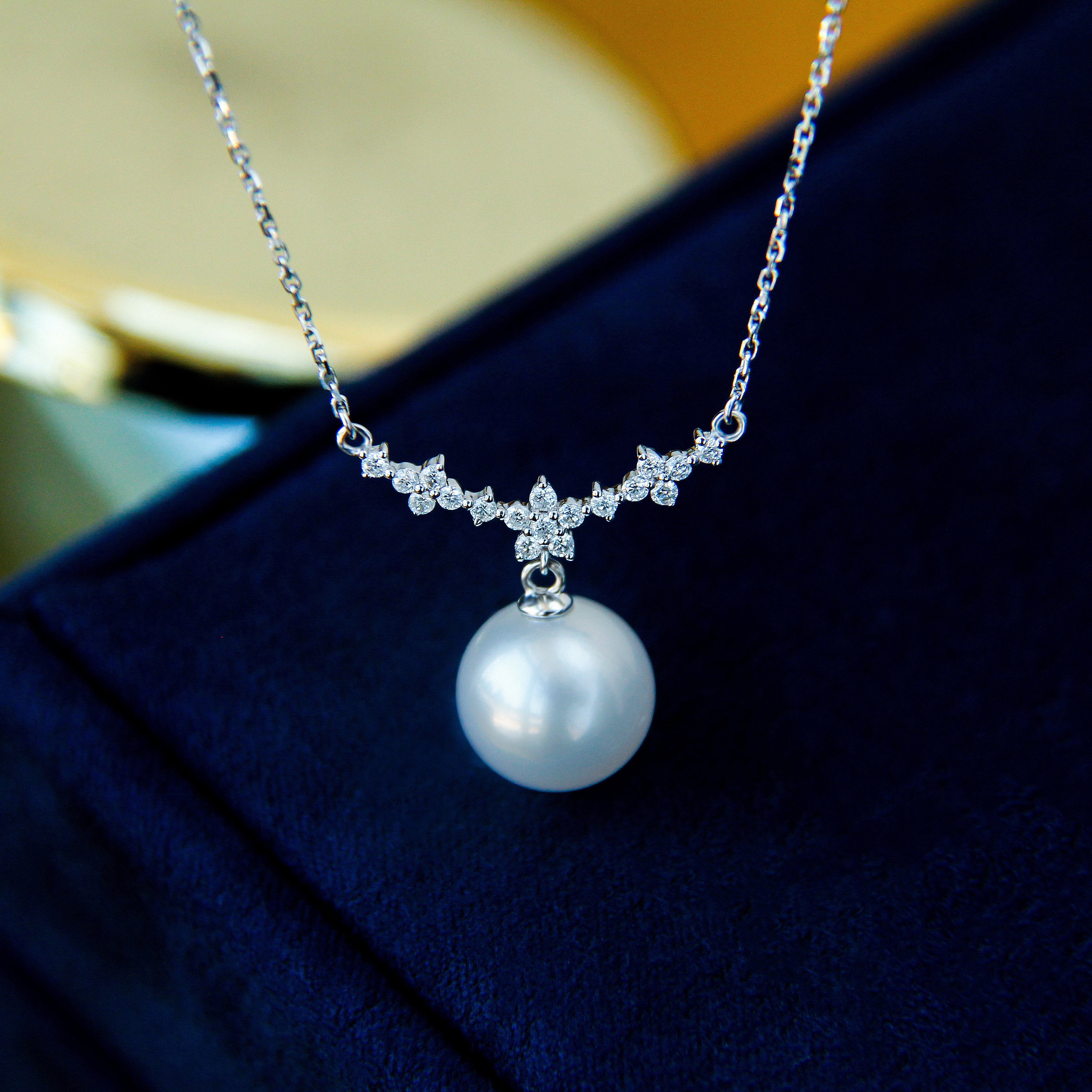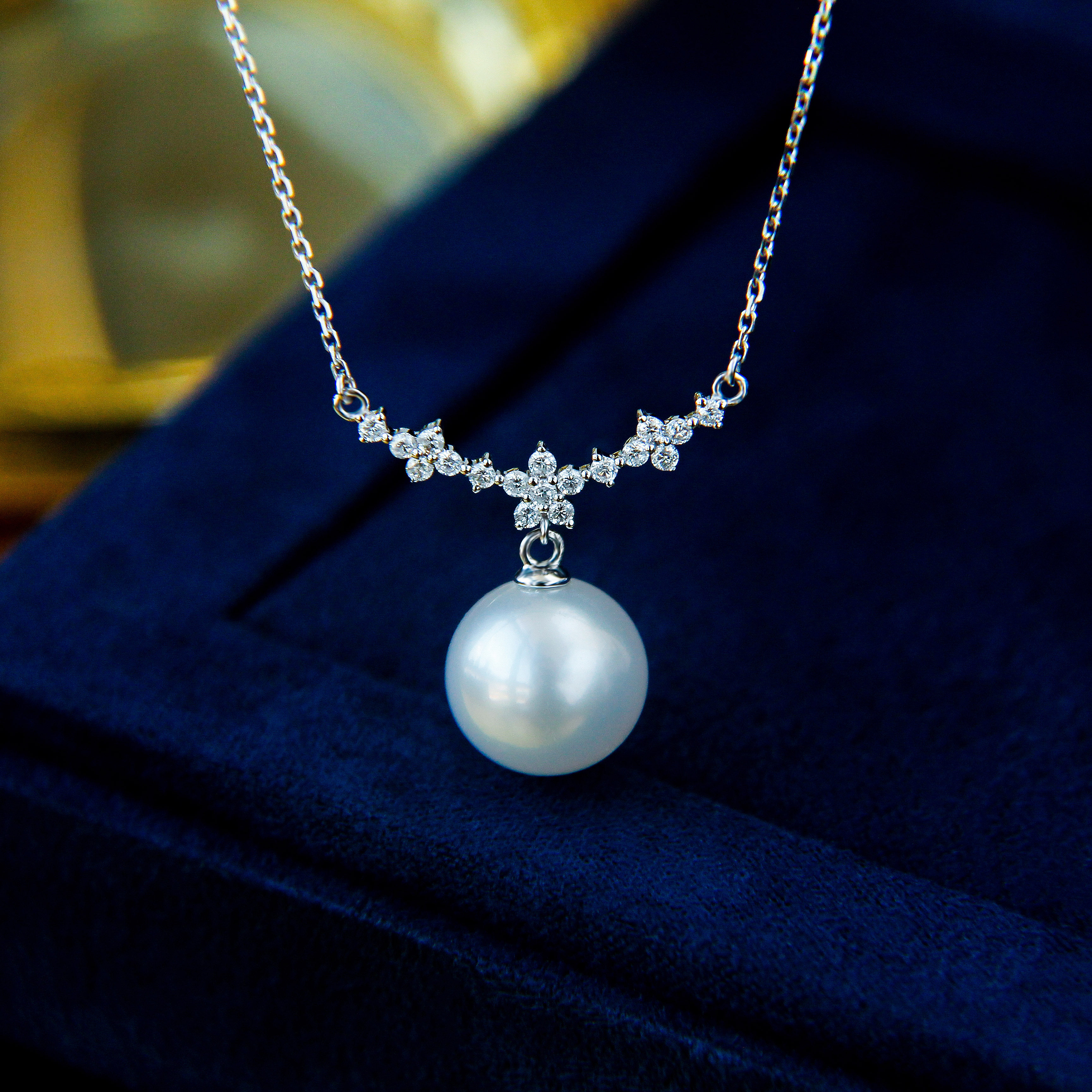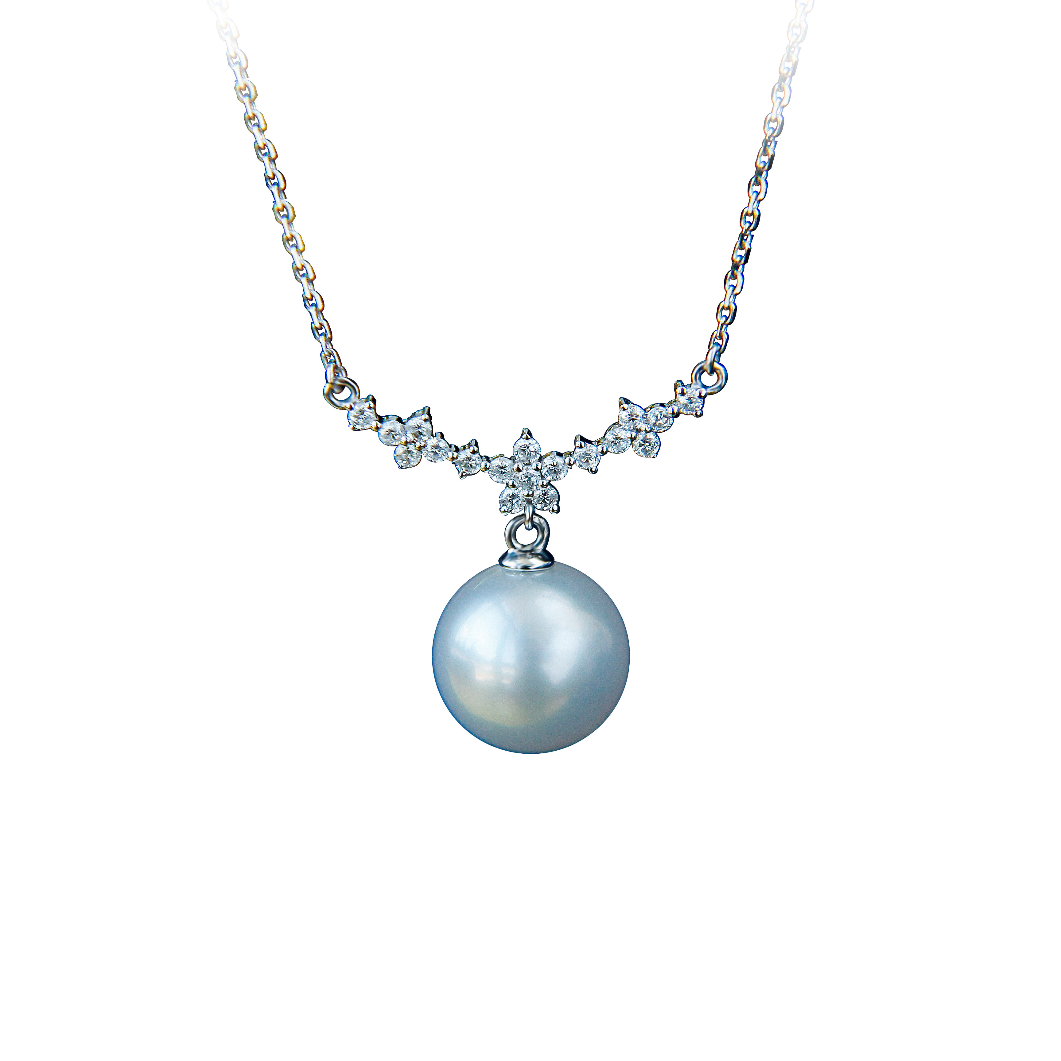 "Ice Princess" Australian White Necklace 18K White Gold Diamond Design Clavicle Chain Seawater Pearl Celebrity Pendant