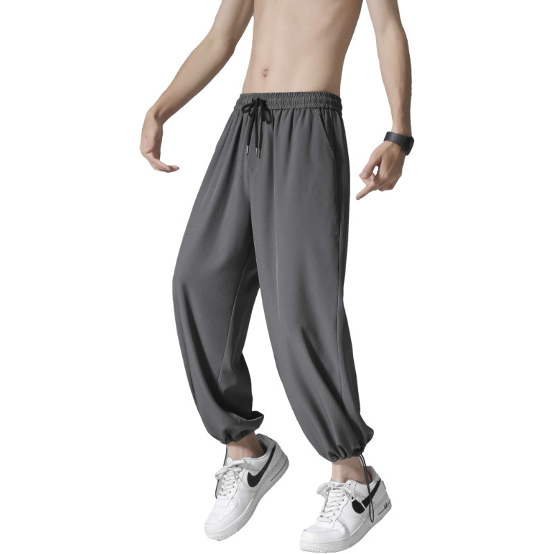 Playboy Ice Silk Pants Men's Summer Thin Trendy Brand Popular Drawstring Loose Straight Casual Trousers