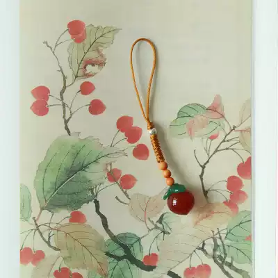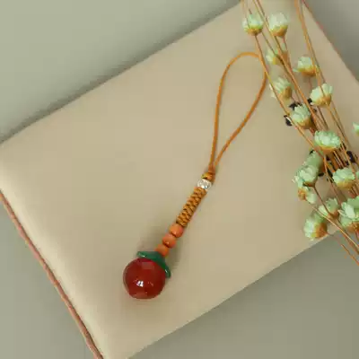 Chrysanthemum original natural jade peach red agate mobile phone pendant mobile phone lanyard bag hanging Chinese style jewelry keychain