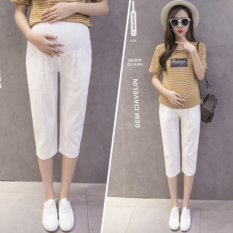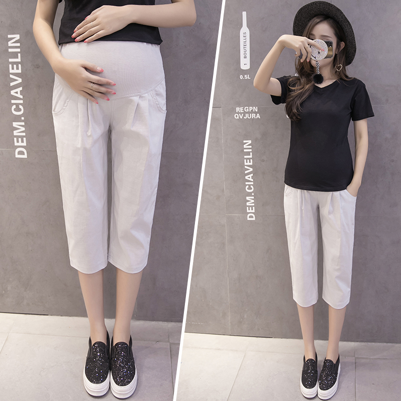 Pregnant Woman Pants Woman Summer Slim Fit Seven Pants Outside Wearing 90% Inner Lap Pants Slim cotton linen 7 Spring and Autumn Fashion