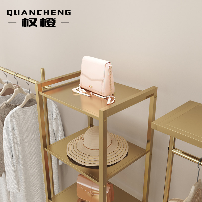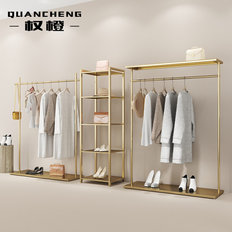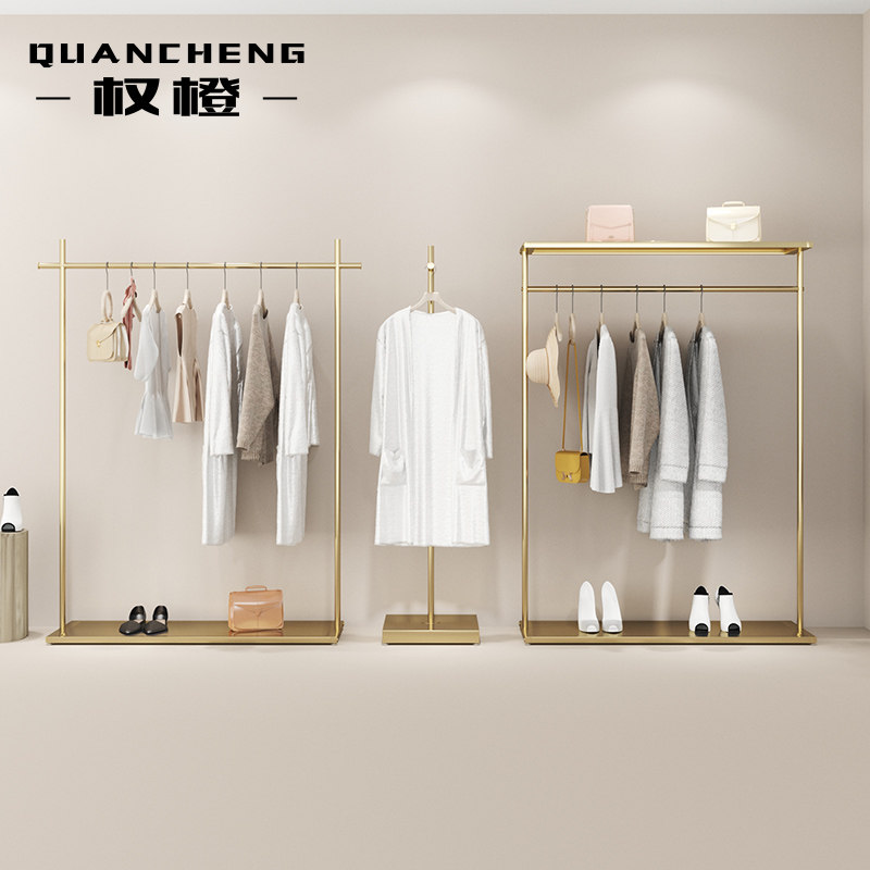 Net red clothing store display stand floor-to-ceiling stainless steel titanium alloy hanging clothes rack light luxury modern women's clothing store shelf