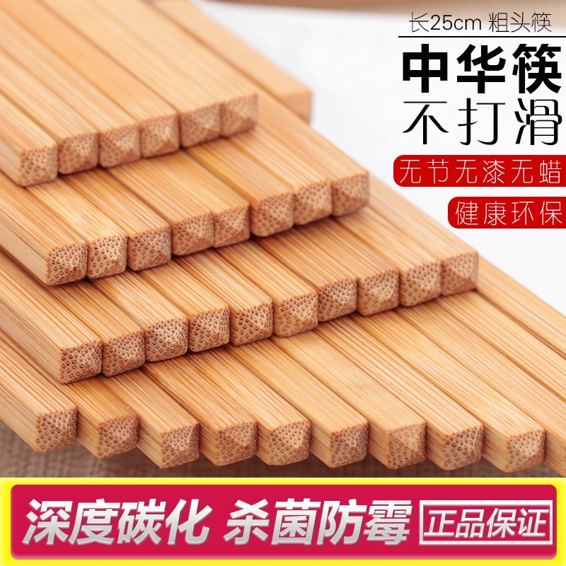 New Chinese traditional Chinese chopsticks household tableware set 10 two sides of solid color bamboo 25 cm 50 pairs in the middle