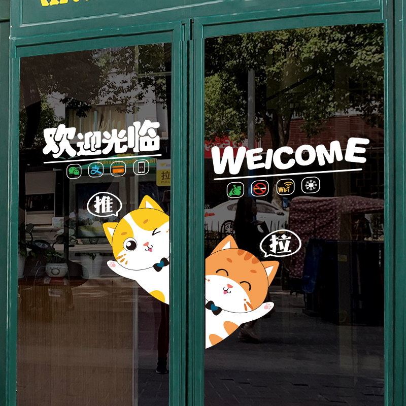 Meow Meow Welcome Opening Hours Cute Milk Tea Beautiful Story Maternal and Baby Bady Penguin Polar Bear Color Block Restaurant Prince Princess Lucky Cat White Cat Story Garland Lucky Cat Simple Wine Bottle Simple Coffee Air Conditioner Open