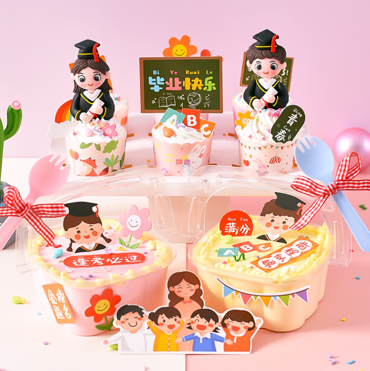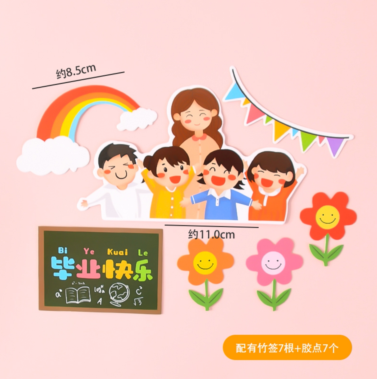 Large flower basket - 10 small flower baskets - 10 graduation Doctors A pair of insert cards a set of teacher children graduation happy set of blackboard We graduated a set of wind and waves A set of handwritten small cards - 6
