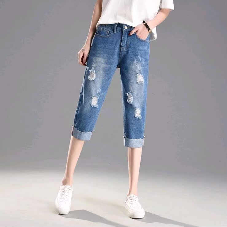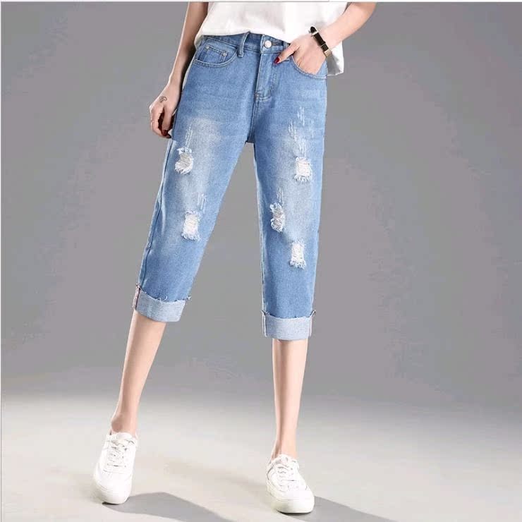 2021 New Summer Large Size Cowboy Seven Software Small Fat Sister MM Broken Broad Legs Pants