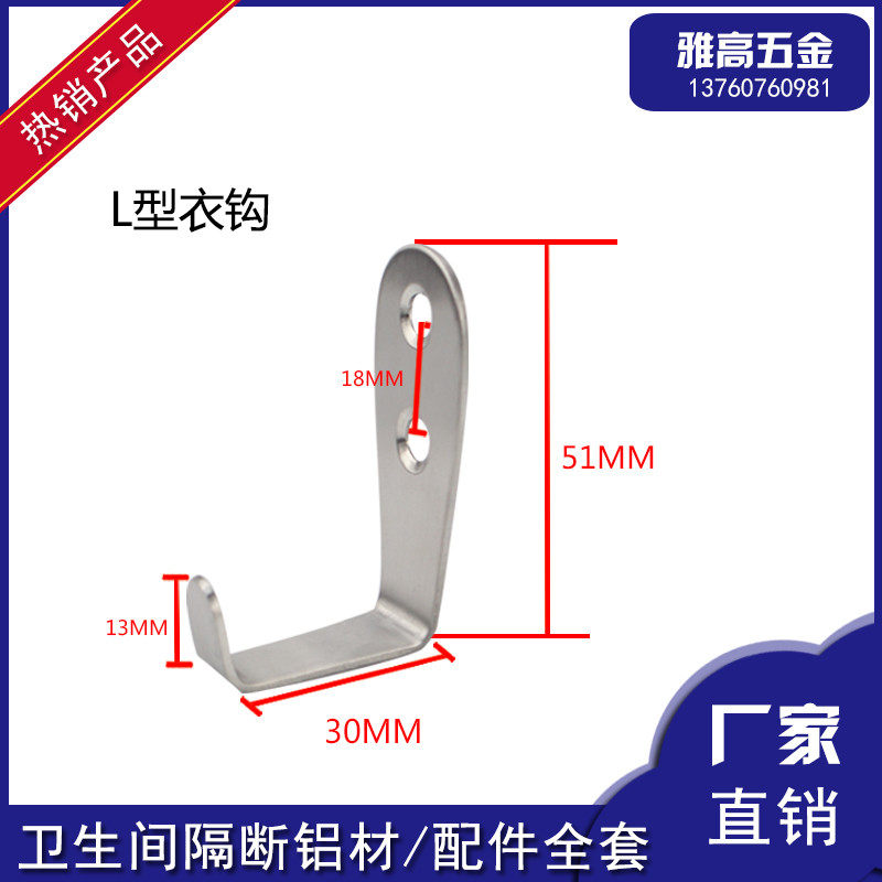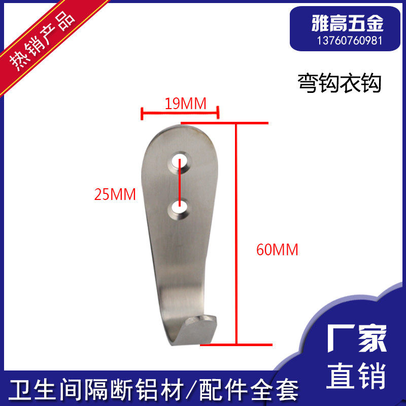Public health partition hardware accessories thickened toilet 304 stainless steel bathroom coat hook coat hook