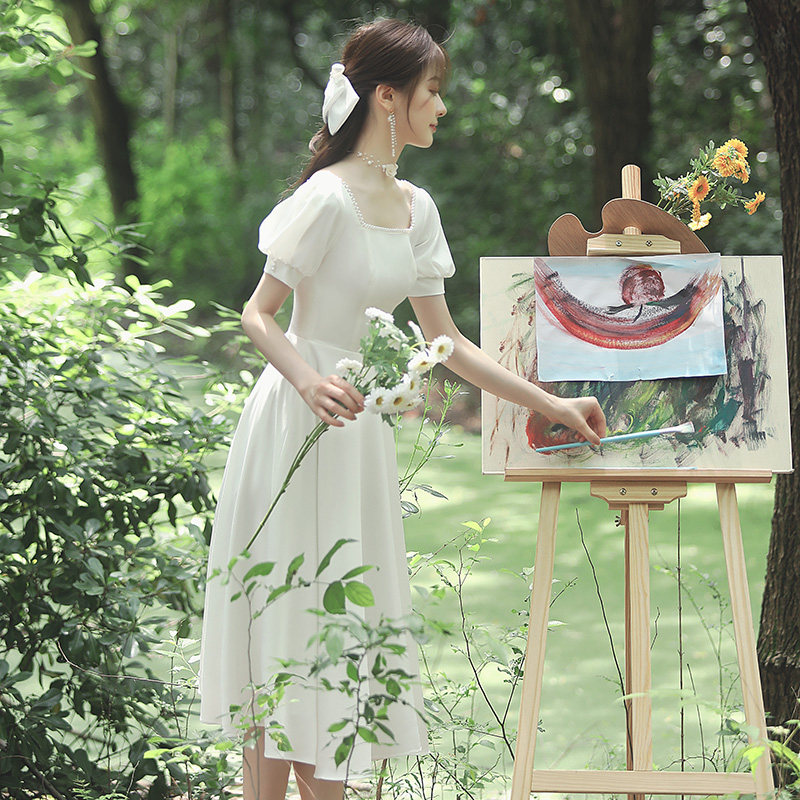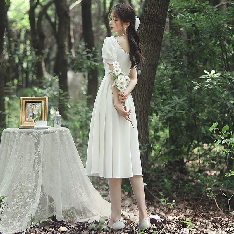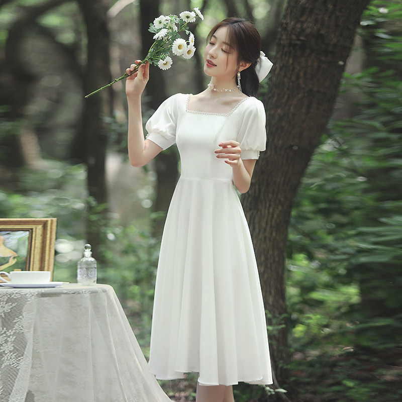 White evening dress registration certification Little white dress dress girl light luxury satin engagement bridesmaid