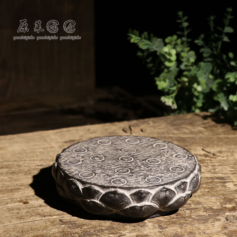 Natural bluestone carving lotus stone drum pot bearing tea mat anti-scalding base Chinese-style small tea table retro nostalgic