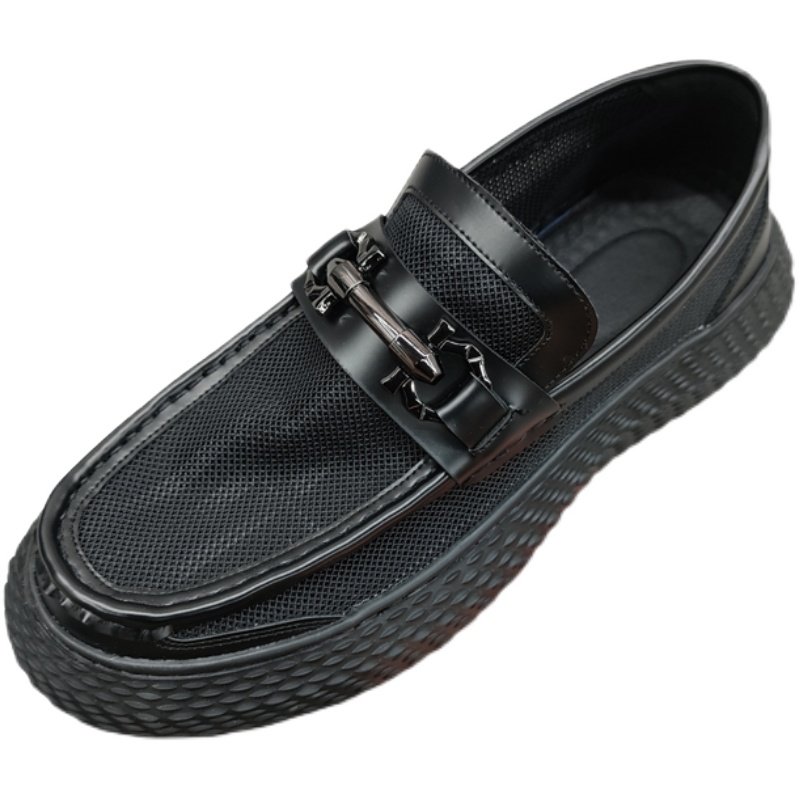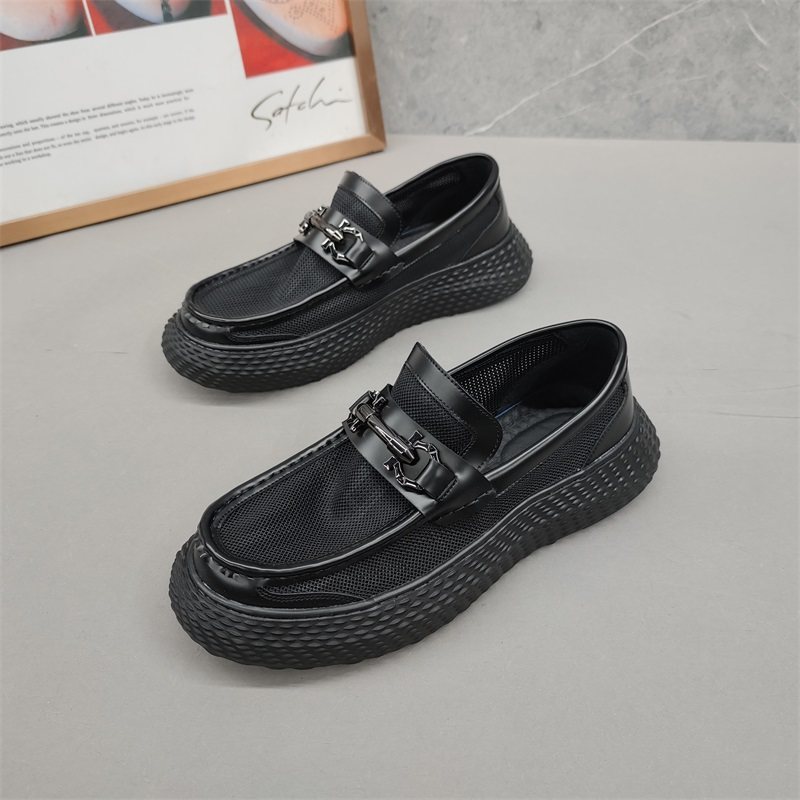 Mesh thick bottom breathable sandals men's summer thin leather black slip-on casual beanie shoes 2022 trend
