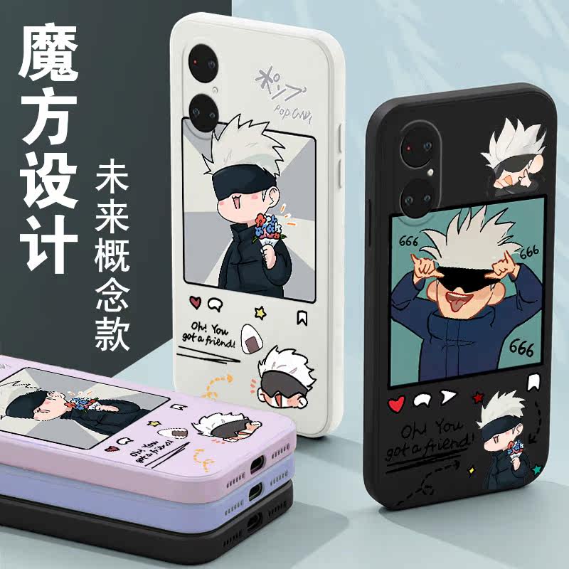 Spell return to battle cell phone protective shell suitable for Huawei P50 Five epiphany P50PRO Two sides Cebu dog roll with Thorns Sand oil Kit Magic Cube Liquid Silicone Square Lens Straight Side Full Bag Soft Anti-Fall Frosted Sleeve