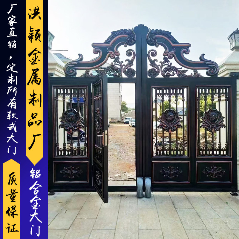 Aluminum art gate villa courtyard double door aluminum alloy fence gate outdoor community entrance door factory wrought iron door
