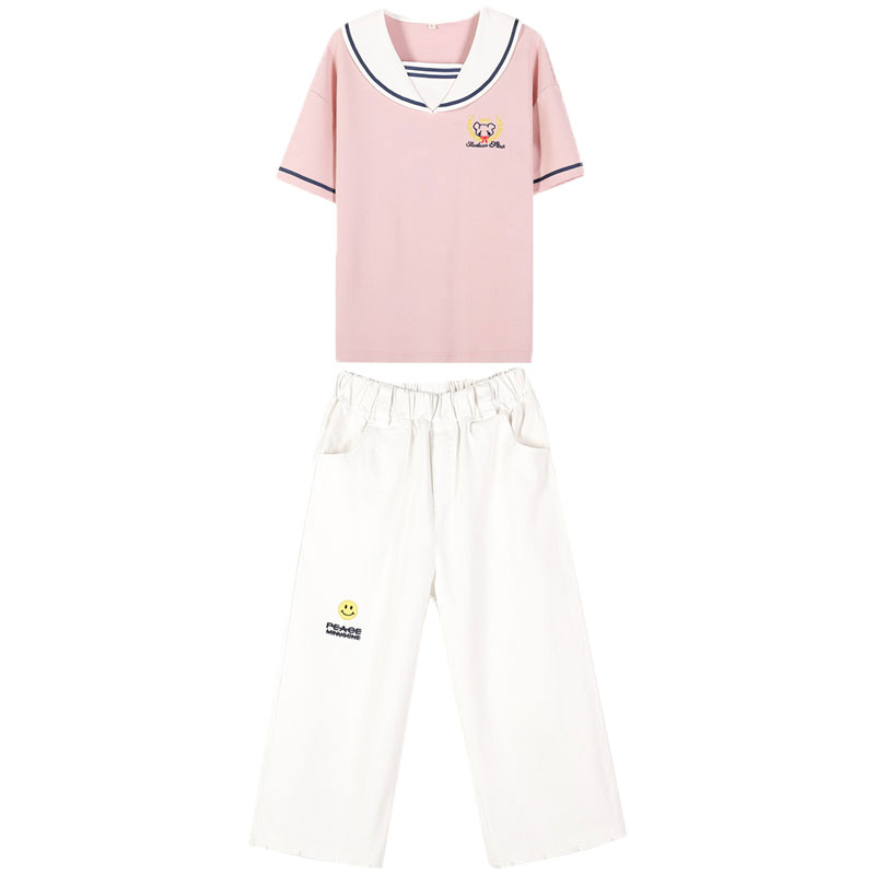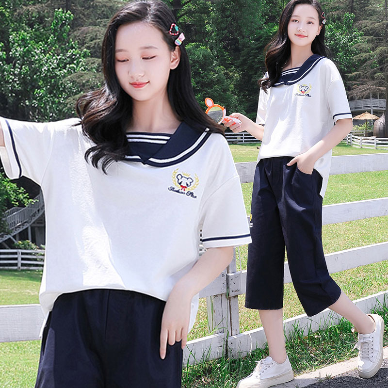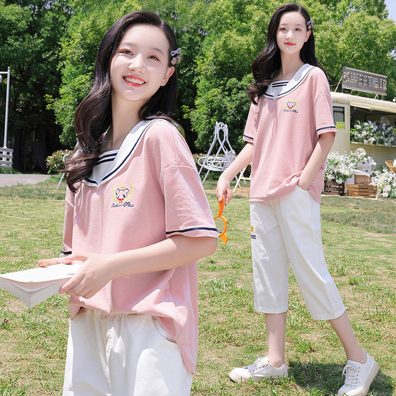 Teenage Girl Short Sleeve Casual Sports Suit 2021 Summer New junior high school Summer clothing student girl jk two sets of damp