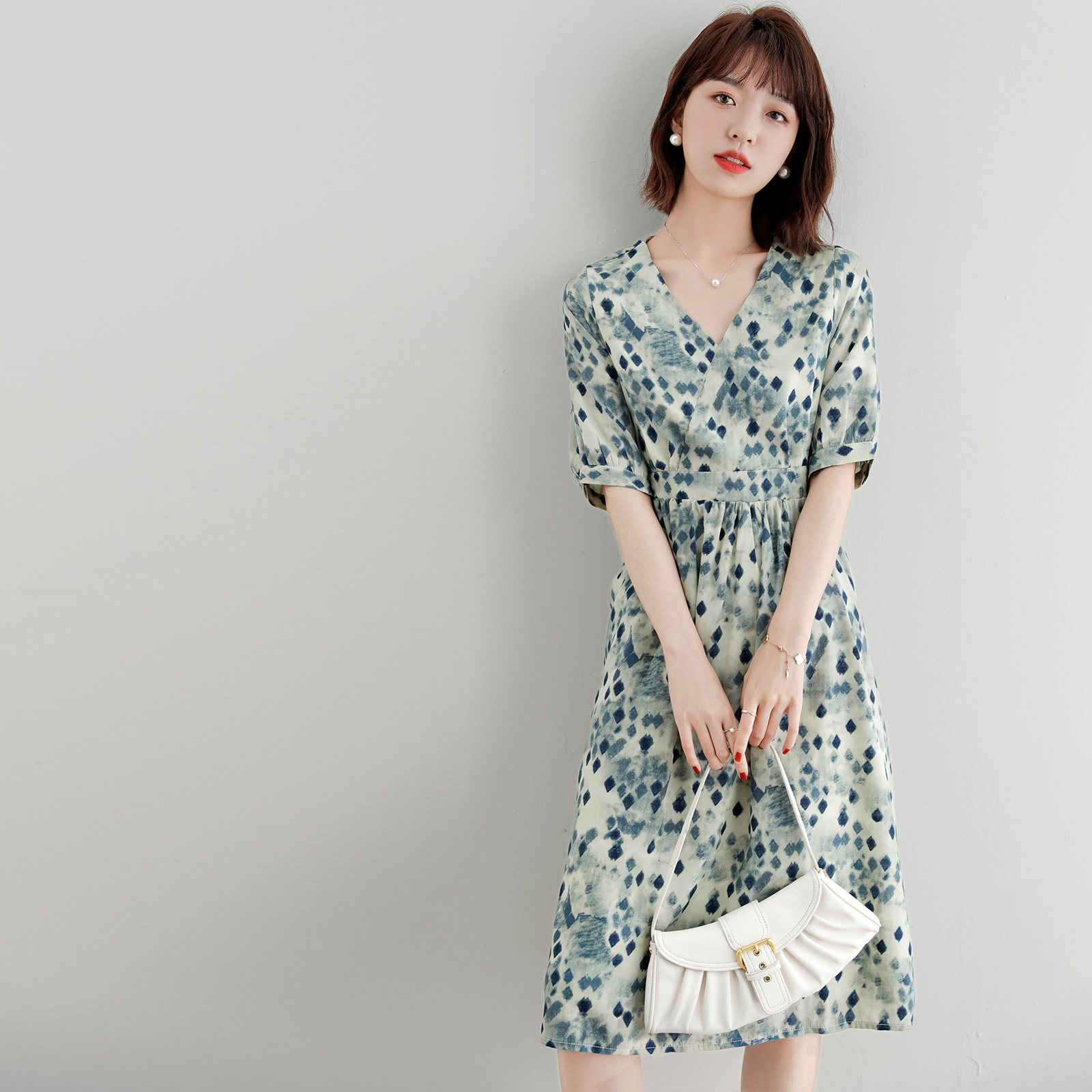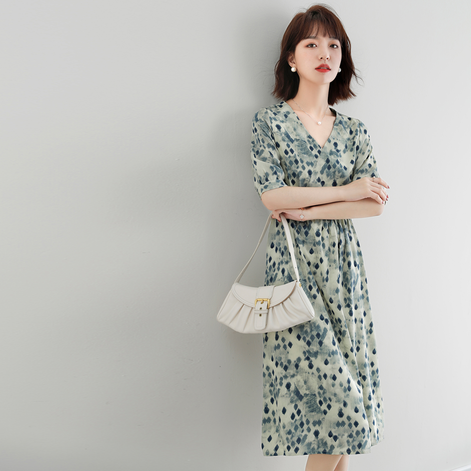 FENPERATE retro elegant ink painting print 2022 summer new temperament light and familiar wind chiffon skirt