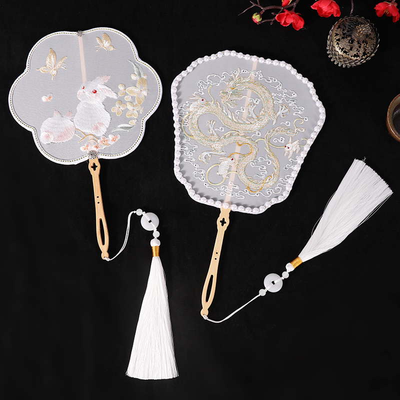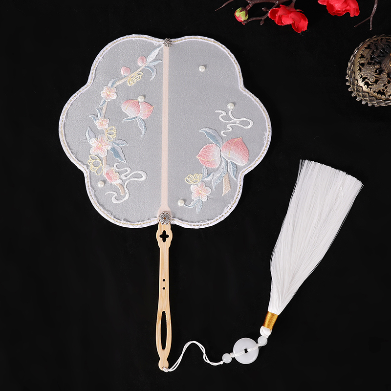Fairy Crane Round Fan Pearl Wrapping fish drama Water round fan Pearl Bag-side Flowers Round Fan Pearl Wrap SMALL KITTY ROUND FAN PEARL COVERED EDGE GRILLED RABBIT SIX PEACHES WITH SIX PEACHES OF PEACH BRANCHES 6 PEACHES PEARL-COVERED PEACHES