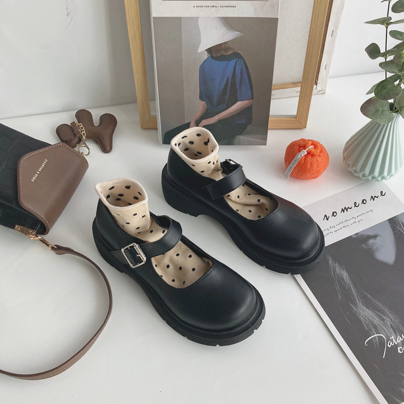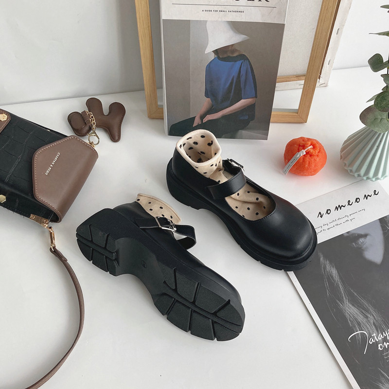 Japanese small leather shoes women's 2021 new summer thin section retro British style thick bottom thick heel buckle Mary Jane shoes