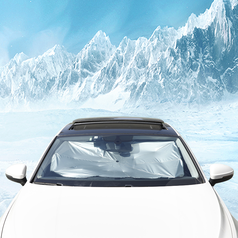 Folding car sunshade parking with deviner sunscreen and heat insulation front wind-proof universal in-car umbrella-shaped sunshield