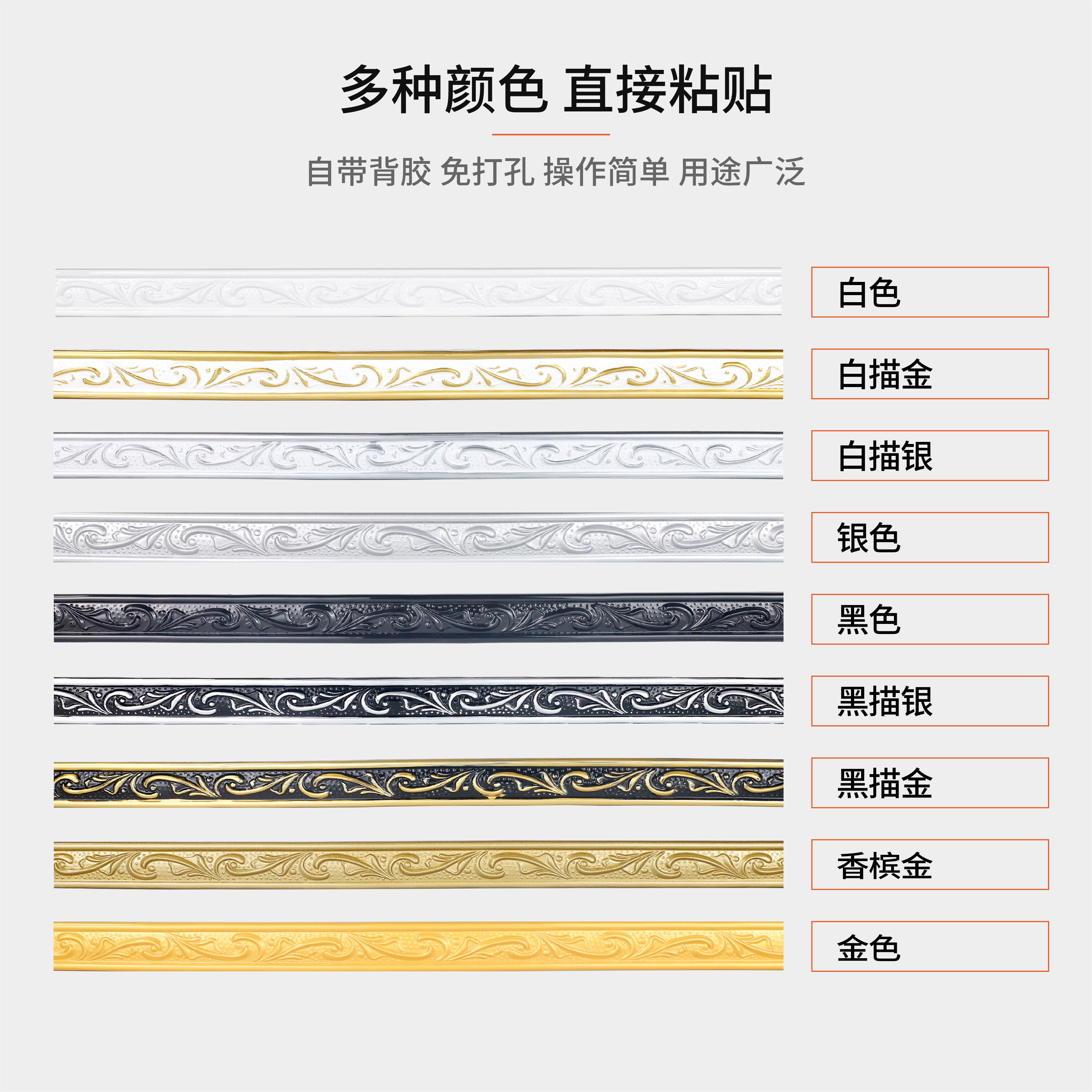 White 5 m One white sketch Gold 5 m One white sketch silver 5 m One silver 5 m One black 5 m One black sketch gold 5 m One black sketch silver 5 m One gold 5 m