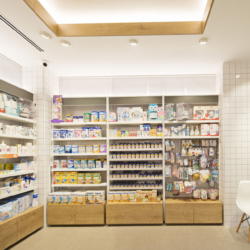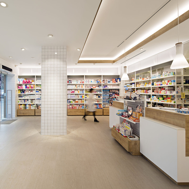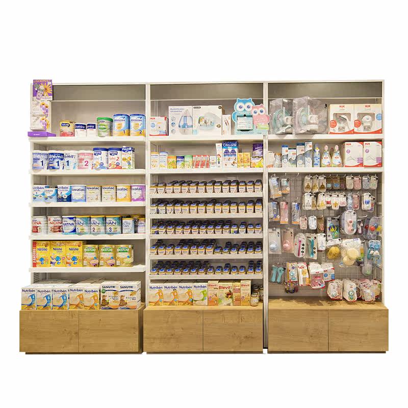 Upscale Wood Drugstore Display Cabinet Small Retail Pharmacy Design Floor Plan Children's Clothing Store Display Rack Shelves
