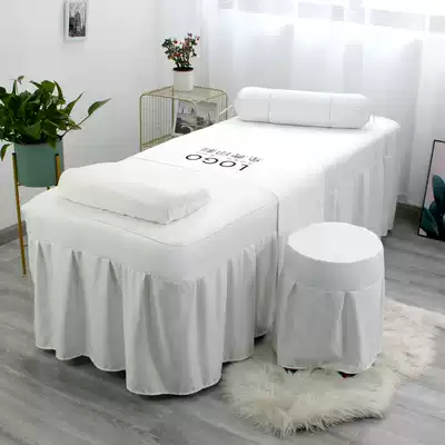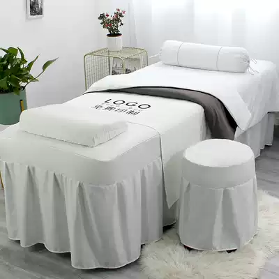 Beauty bed cover four-piece set Solid color light luxury beauty salon special massage therapy skin management bed cover printed logo