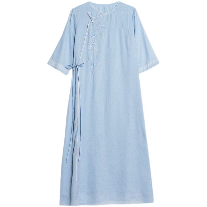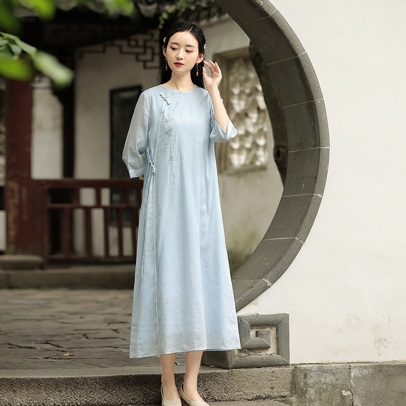 China Wind Loose Tea Suit Zen Suit Improved Qipao, Hemp Zen Meaning Women Dress Summer Ancient Wind Cotton Numb Dress Women Breathable