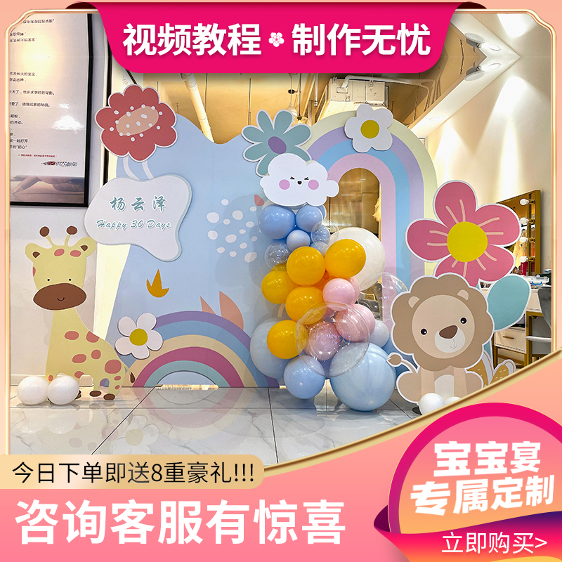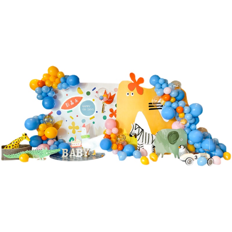 INS children's first birthday arrangement balloon scene decoration 100-day baby feast cartoon theme background wall KT dress up
