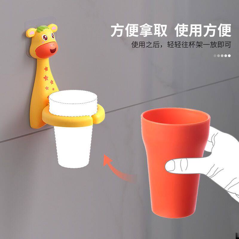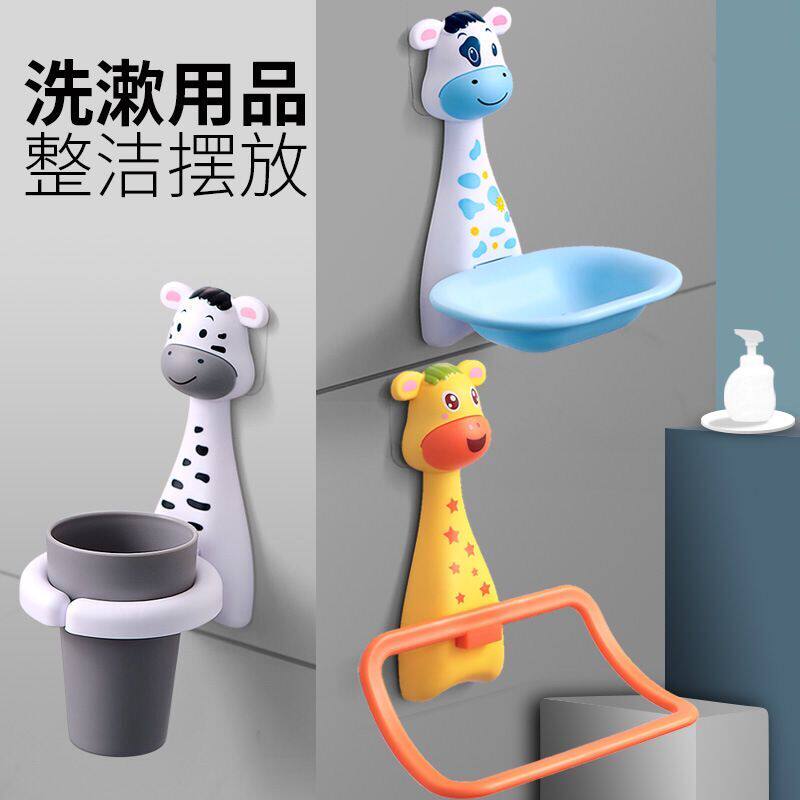 Baby tooth cup toothbrush cartoon wall-mounted toothbrush holder children's toothbrush cup anti-fall free punch bear deer soap holder