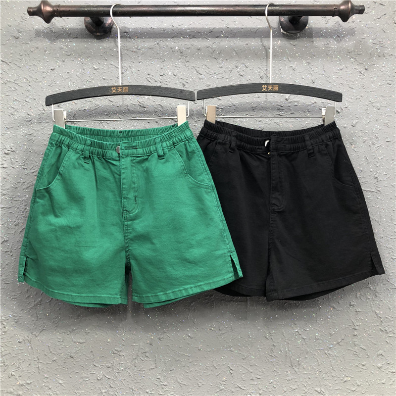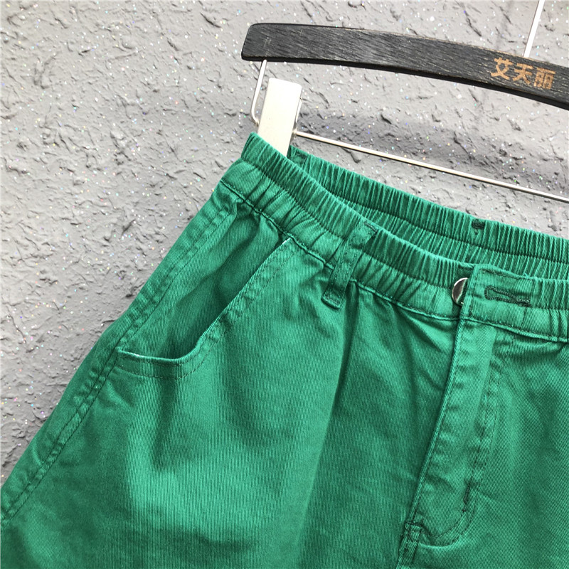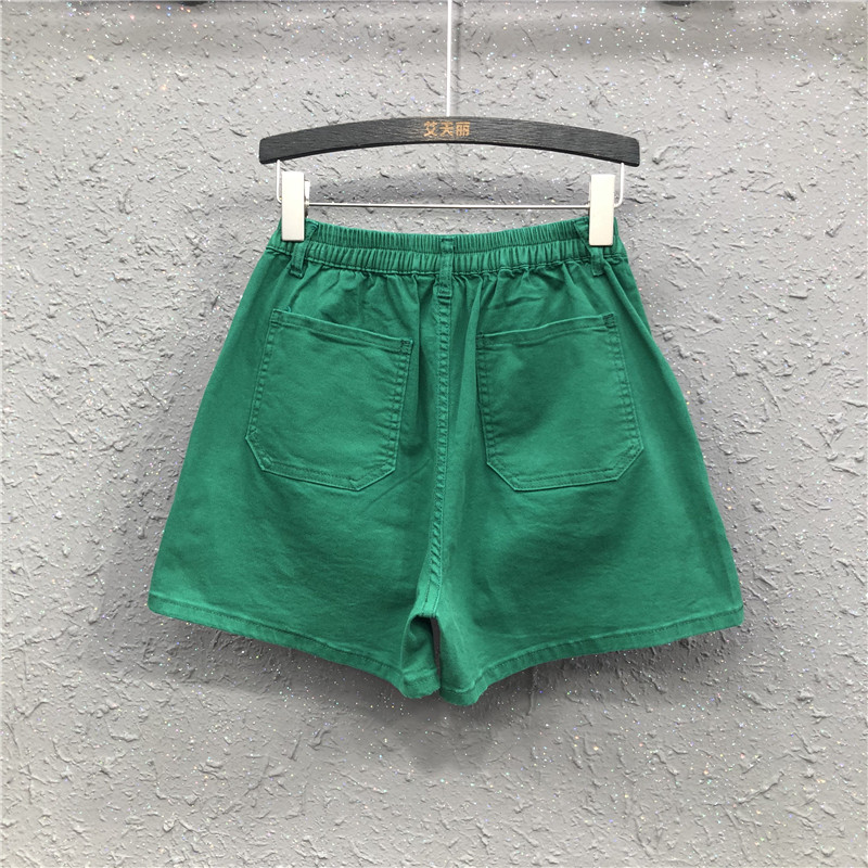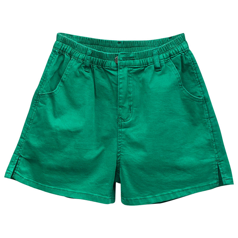 Summer casual green denim shorts women's 2022 new Hong Kong flavor elastic waist small slit wide-leg pants a-line hot pants
