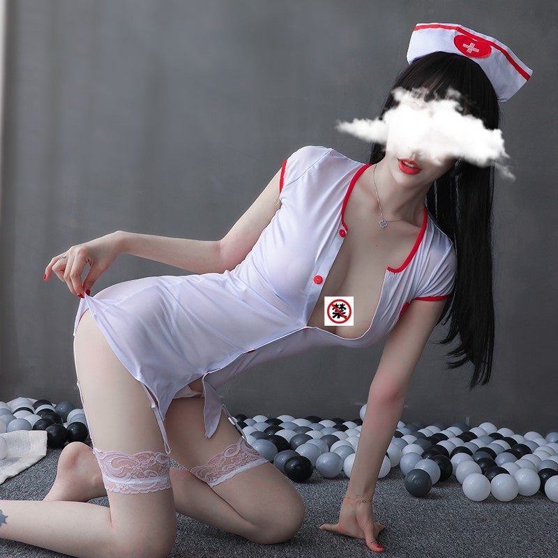 Nurse suit White stockings Nurse suit Black mesh pants Nurse suit Open silk pants Nurse suit Blindfold hat clothes underwear Nurse suit White mesh socks