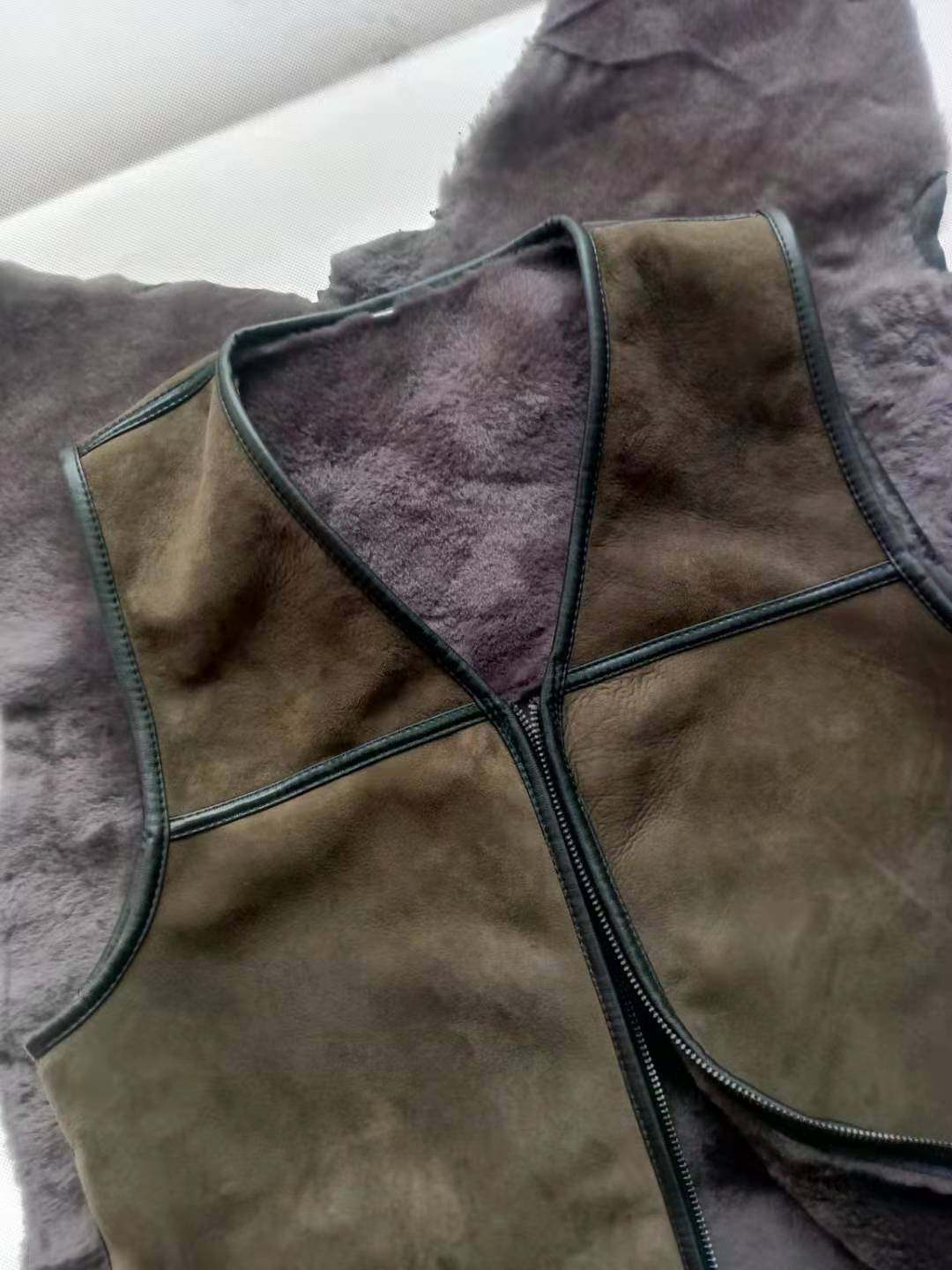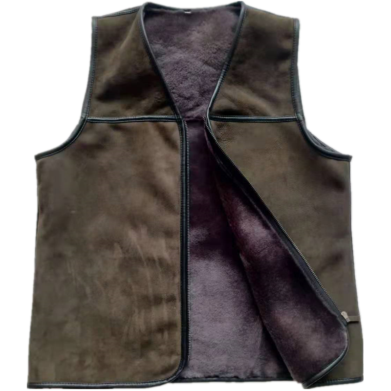 Autumn and winter fur integrated waistcoat sheep cut down whole leather Campion shoulder mid-aged men and women warm and casual lambskin wool vest