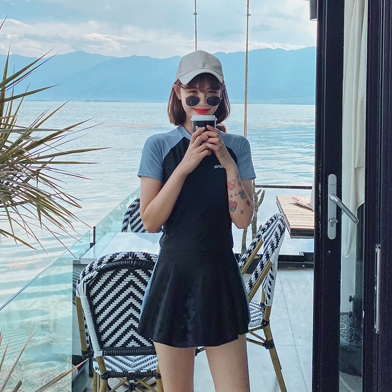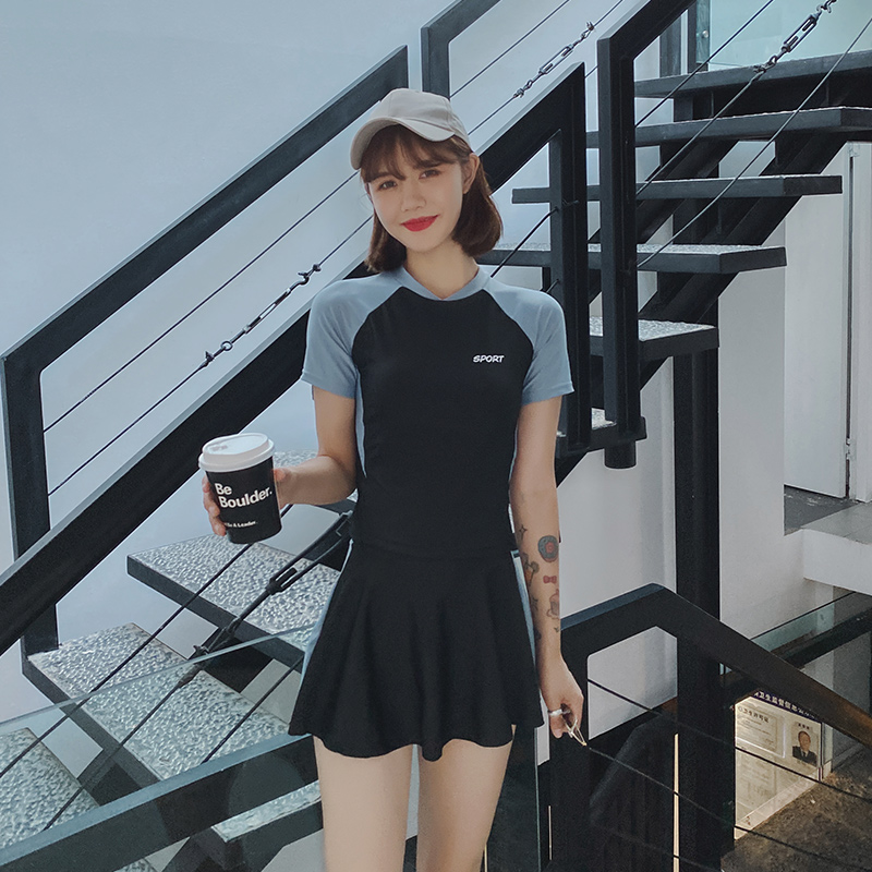 Yimeishan swimsuit women's summer 2021 new fashion conservative belly cover thin professional sports split skirt swimsuit