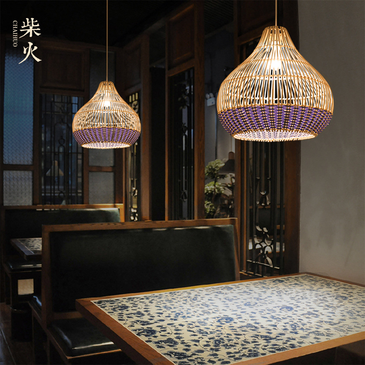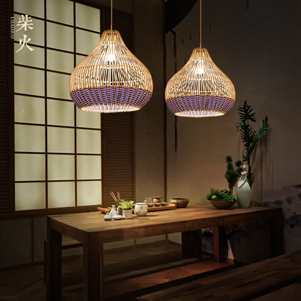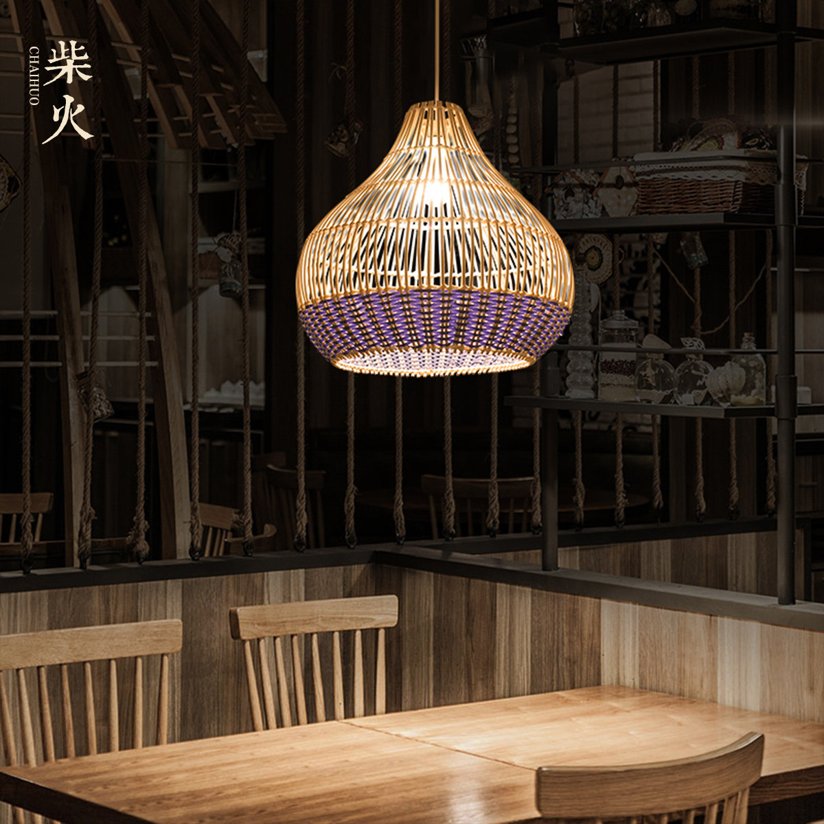 Day-style minimalist creative personality room Dining Room Hotel Zen tea room Balcony by hand woven natural rattan chandelier