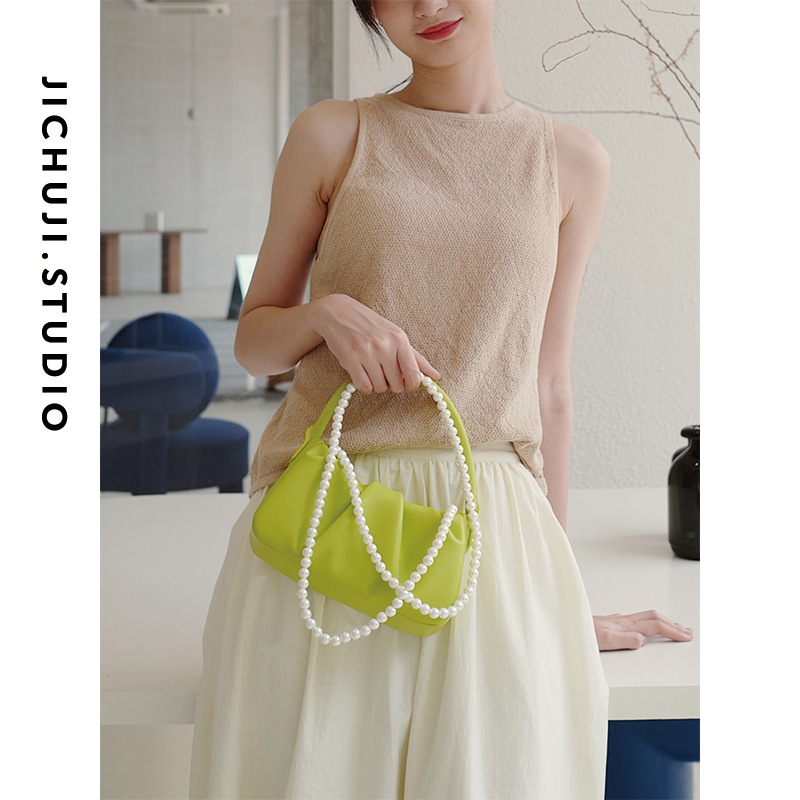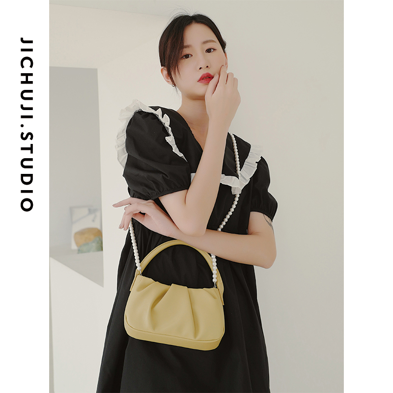 Versatile texture handbag women's fashion pleated cloud bag niche exquisite small bag summer pearl chain messenger bag