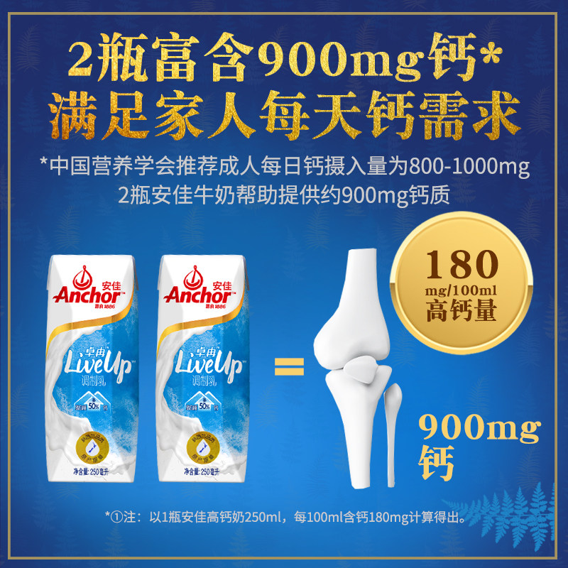 Anchor New Zealand imported milk Anchor Adult youth breakfast high calcium milk 250ml*15 whole boxes