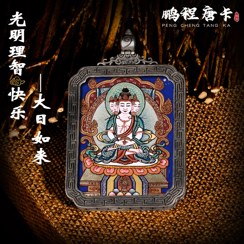 Pure hand-painted carry-on thangka pendant big day Buddha statue zodiac Buddha pure silver Gawu box Buddha plaque pendant