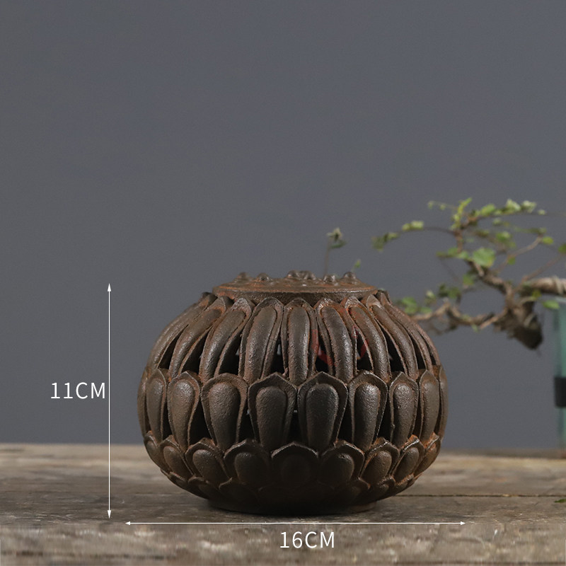 Retro nostalgic new Chinese old ironware lotus root incense furnace cast iron sandalwood incense incense burner classical collection ornaments