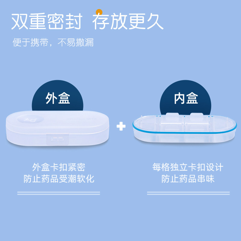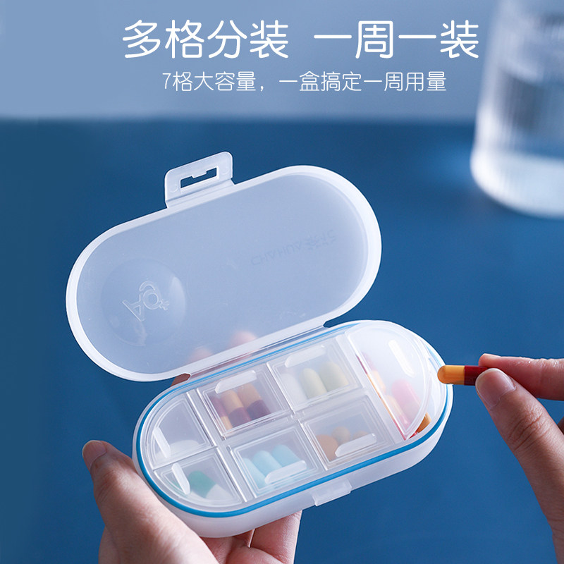Portable small pill box silver ion antibacterial 7-day large-capacity sealed box portable mini pill sub-packaging storage box
