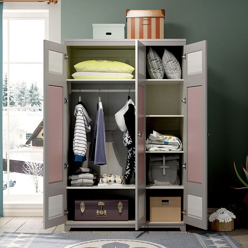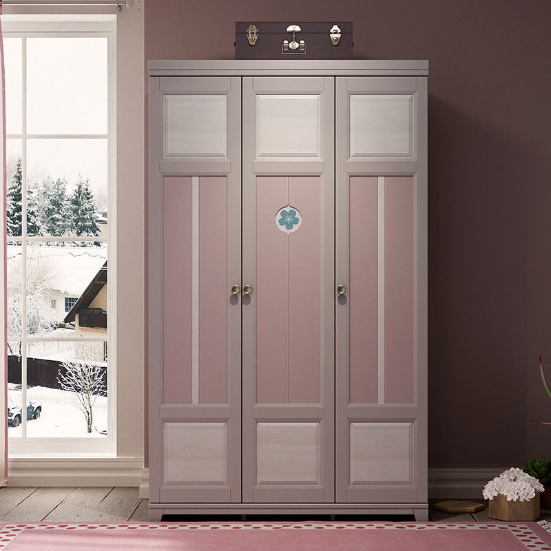 Children Wardrobe Three Doors Solid Wood Girl Bedroom Furniture Home Princess Two Doors Single Hanging Wardrobe Assembly Closet