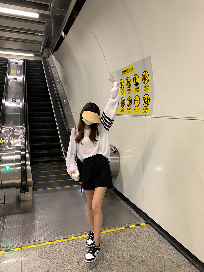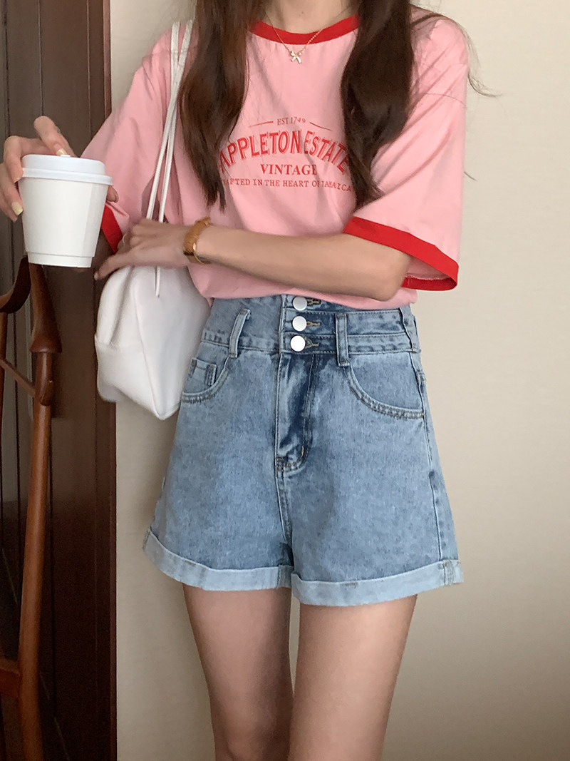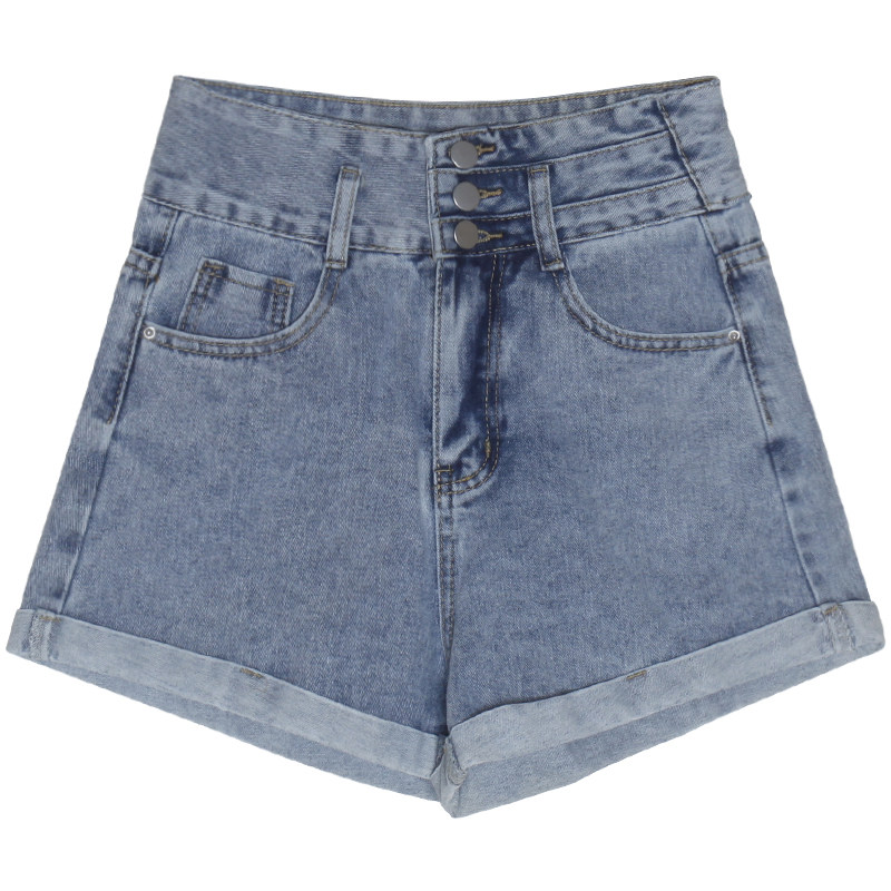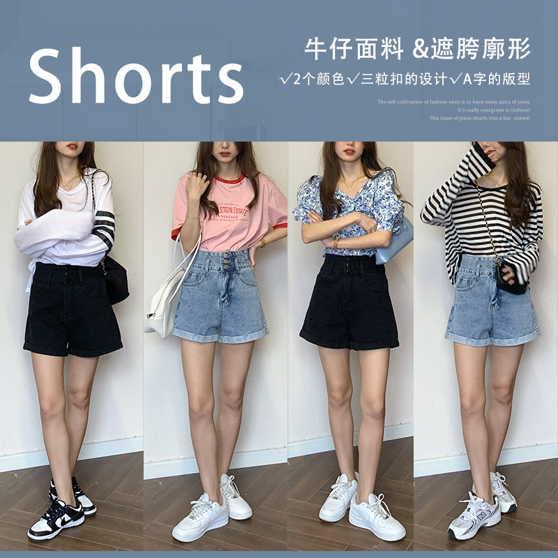 Wu 77 casual white jeans women's Korean version high waist thin three buckle rolled edge wide leg shorts 2022 summer
