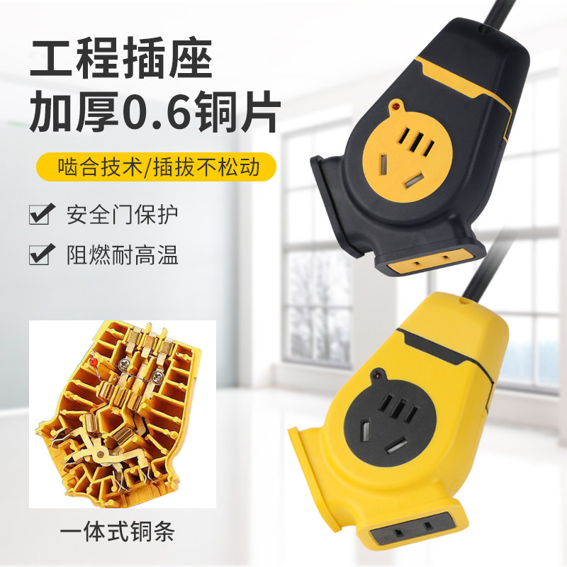 High-power plug-in socket site drag charging extension cord extension cord household multi-function power strip with line