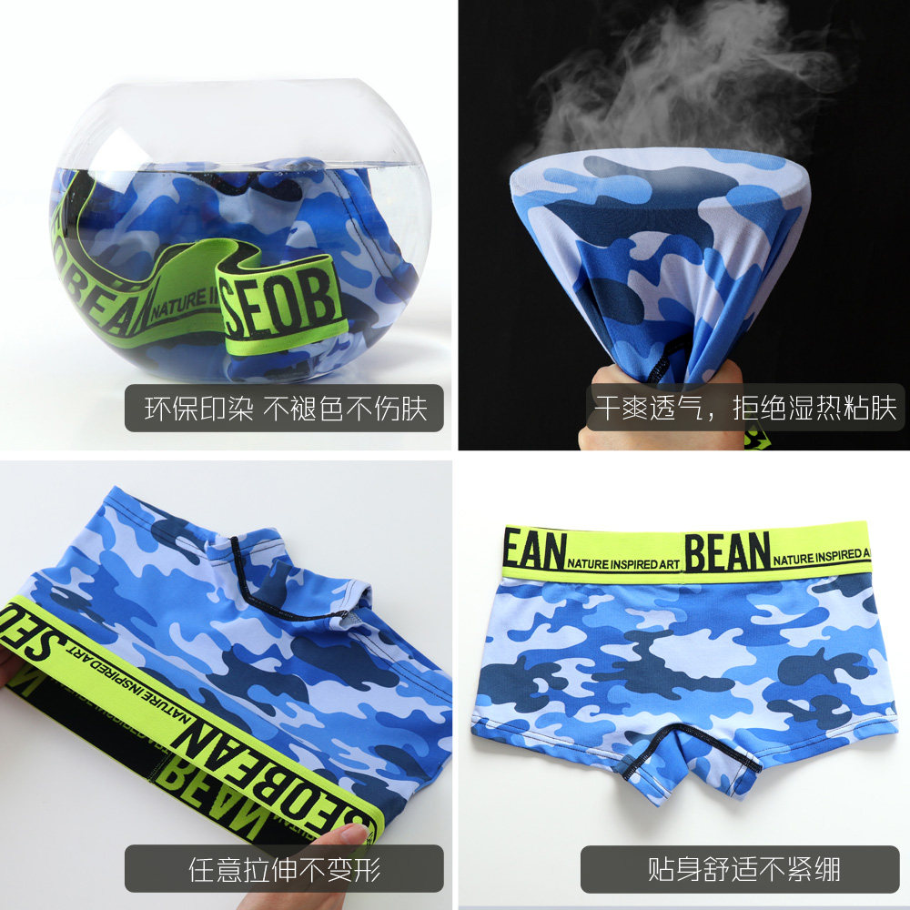 Summer four corners underwear female LES handsome cotton wide side camouflage printing sports four corners shorts breathable antibacterial safety pants