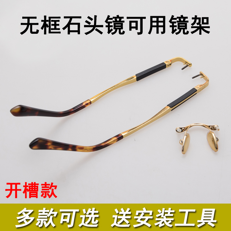 Rimless edge-cut glasses temples natural crystal stone mirror temples sunglasses high-grade sheet metal frames glasses accessories