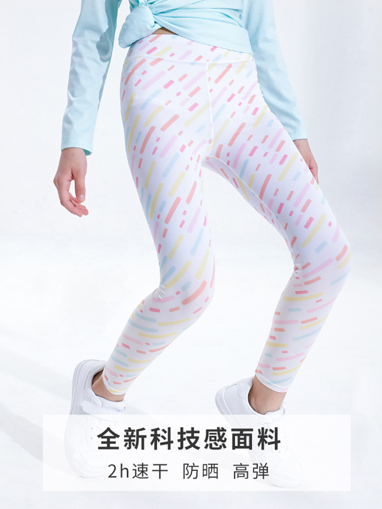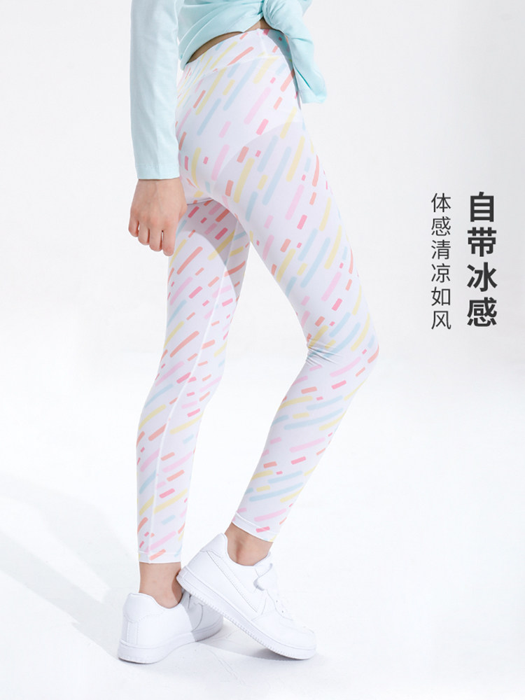 Girl Clothing Toddler Yoga Pants Summer Light Thin Speed Dry Sports Pants Children Long Pants Large Child Sunscreen Ice Silk Print Flowers