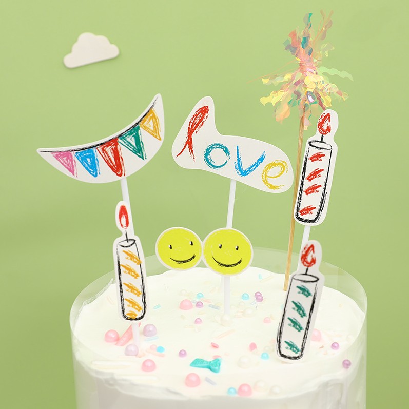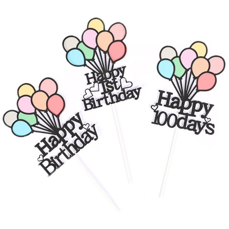 ins cute colorful balloon cake inserts happy birthday one year 100 days party inserts flag-Taobao