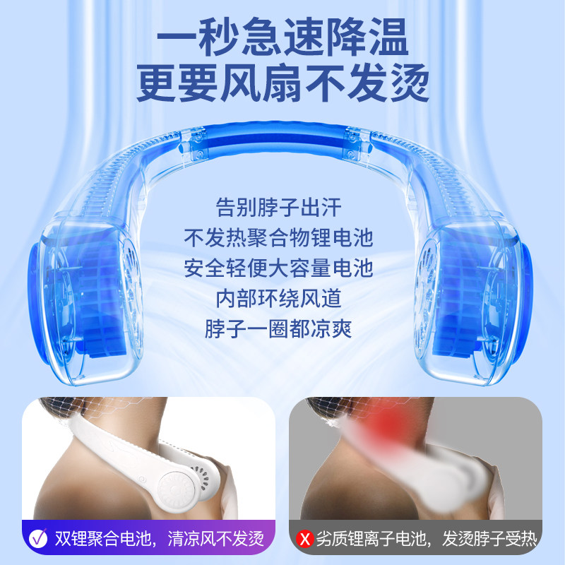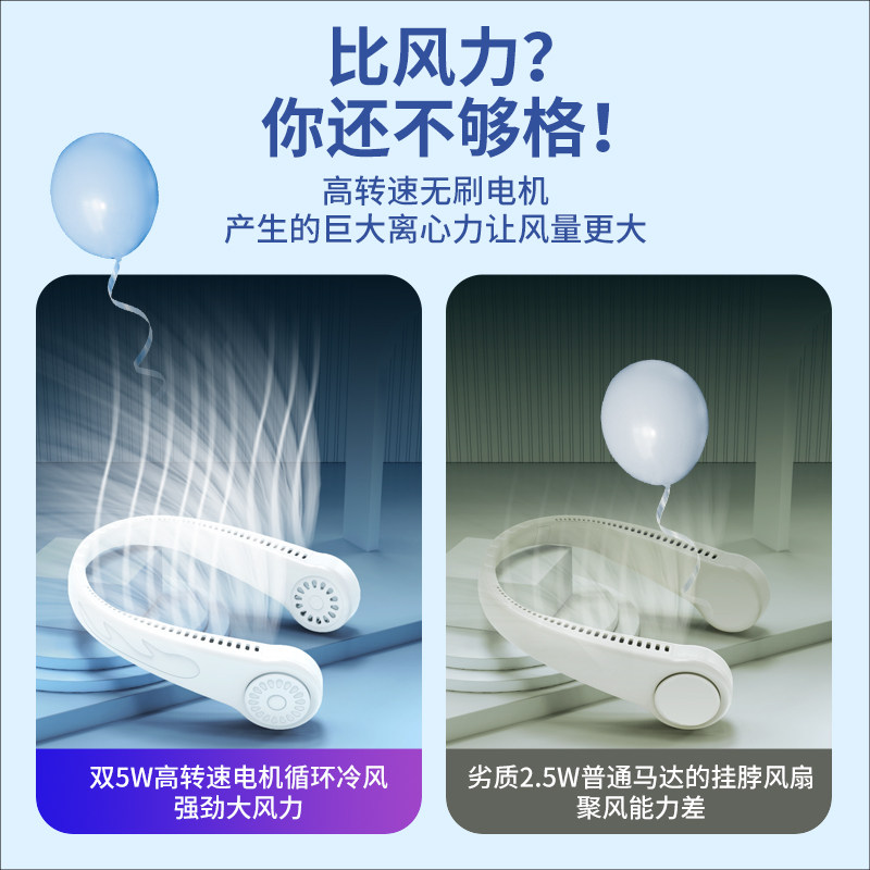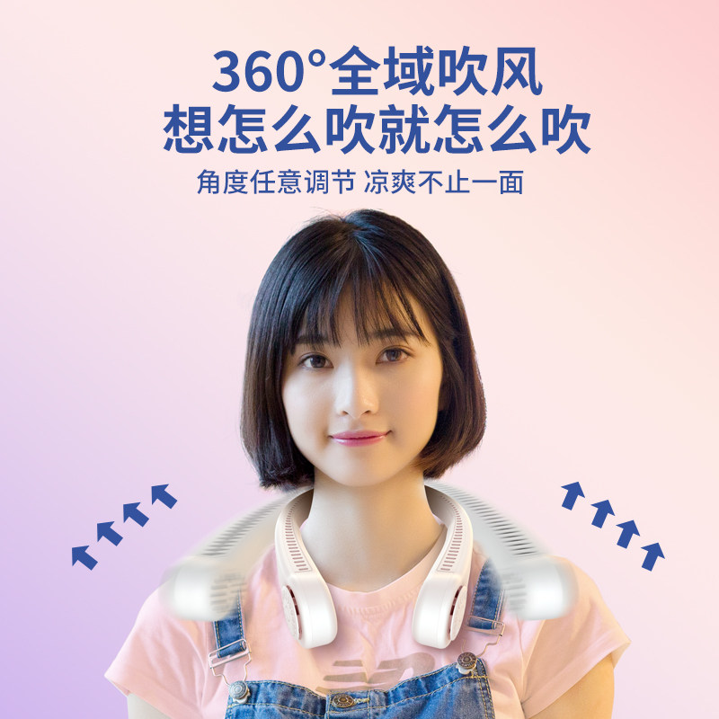 No leaf hanging neck small fan portable mini lazy silent rechargeable outdoor portable big wind head wearing electric fan