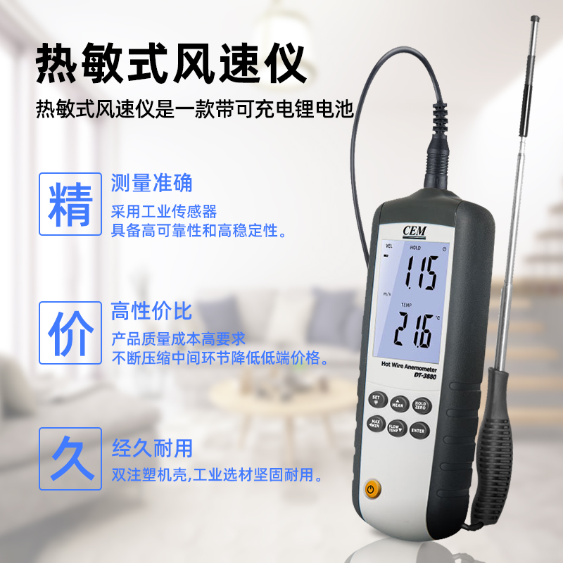 CEM Changchang Thermal-sensitive handheld wind speed measuring instrument D3880 high-precision pipe wind speed wind temperature wind temperature measurement
