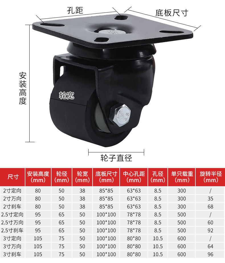 Heavy castors 1 inch small universal wheel 3 inch 4 inch cart nylon wheel with brake bearing low centre of gravity load 2 ton pulley